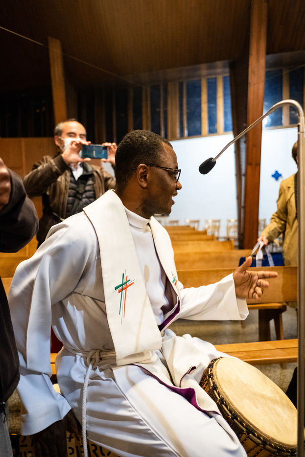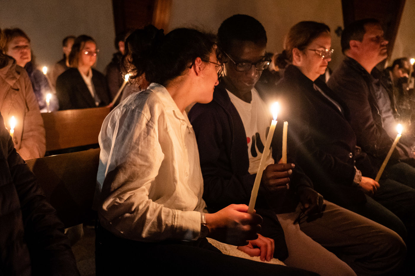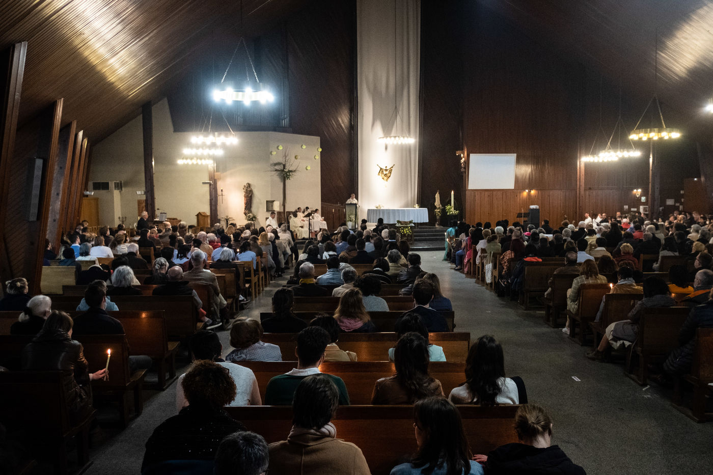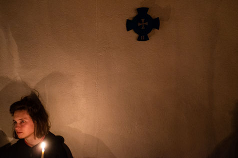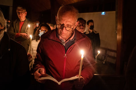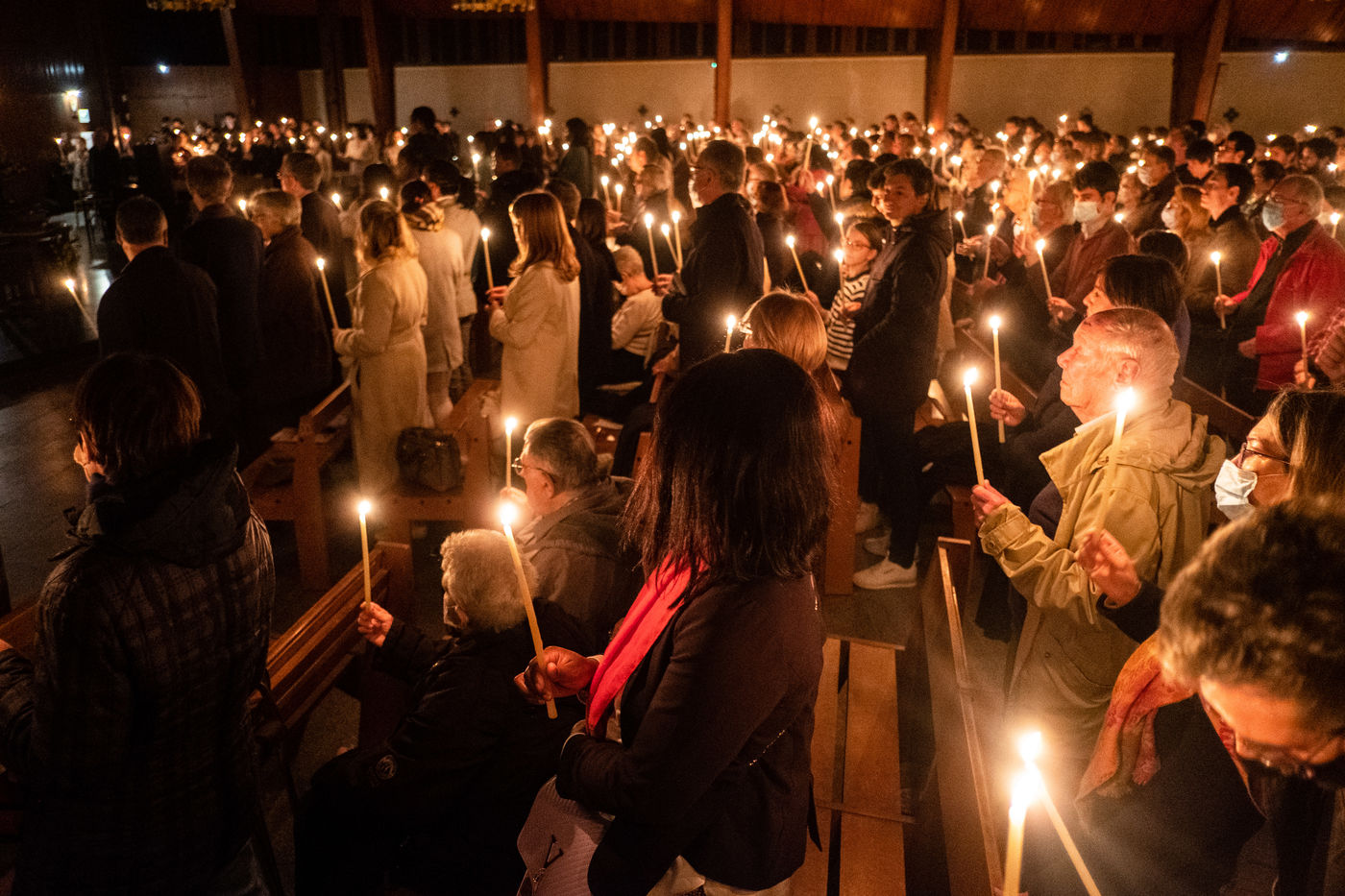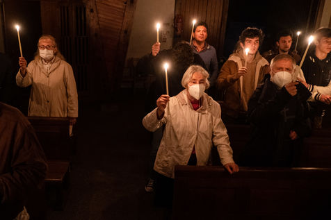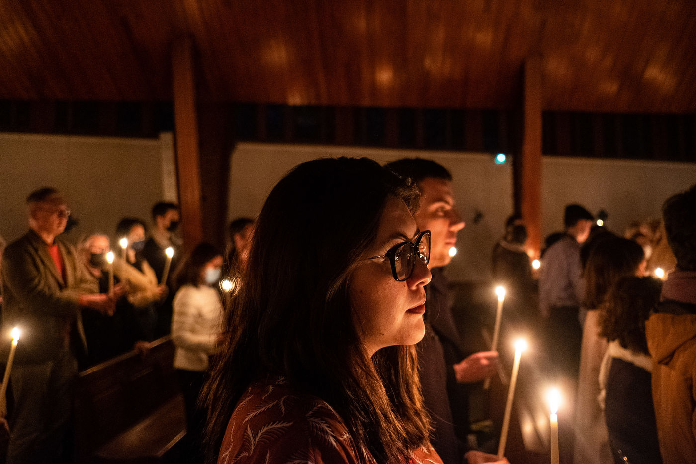 France, Saint Germain en Laye, 2022/04/16. A mass is given during the Easter Vigil in the parish of Saint Leger. Photography by Alexandre Bre / Hans Lucas.
