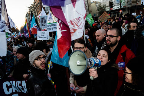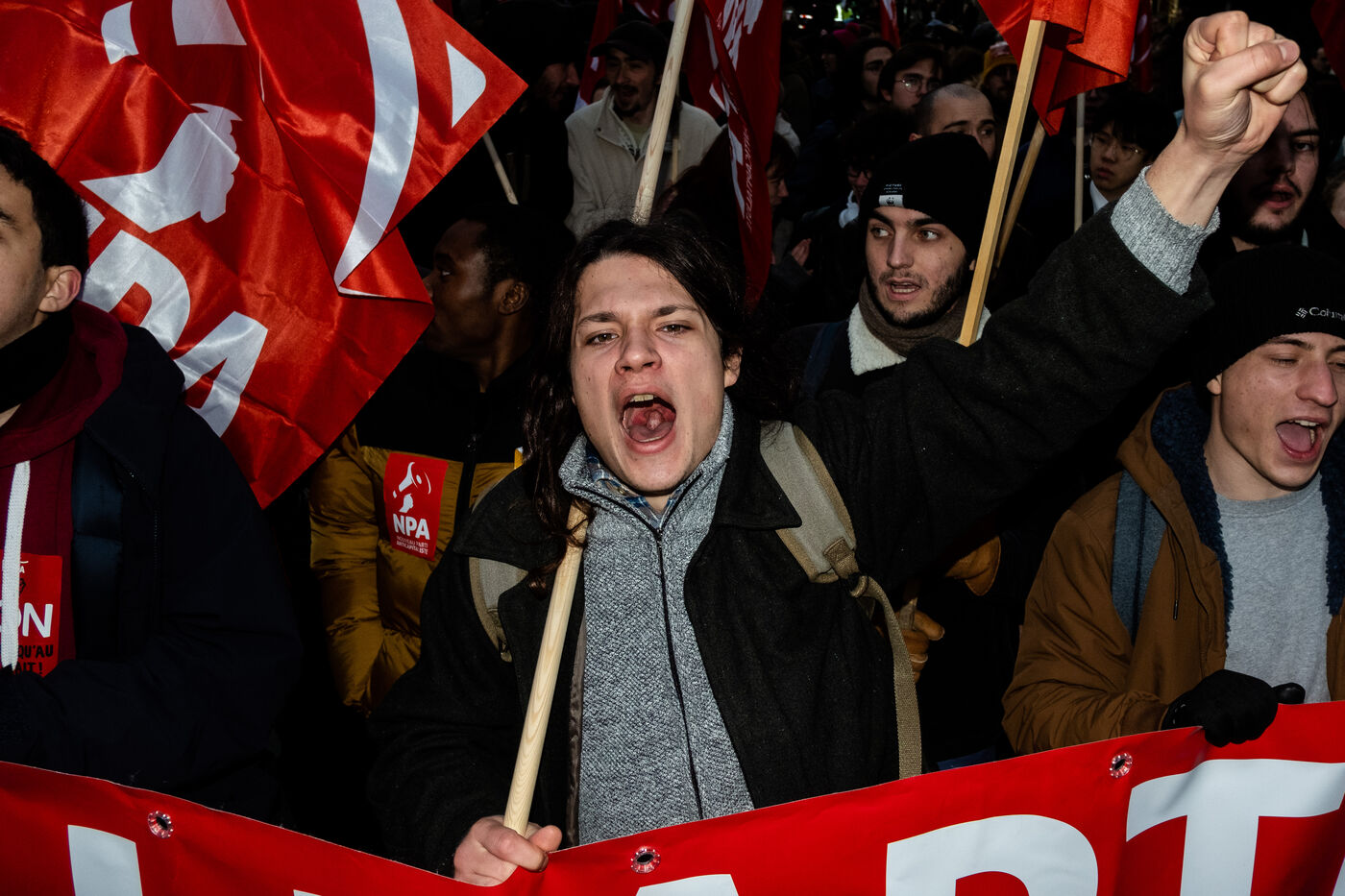 France, Paris, 2022/01/21. Manifestation convoquée par les les partis de gauche, gilets jaunes et syndicats étudiants et la jeunesse contre la réforme des retraites du gouvernement. Photographie par Alexandre Bre / Hans Lucas.