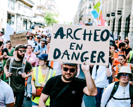 France, Paris, 2025/06/12. Strike and demonstration by the archaeological community in Paris on June 12, 2025, to defend the discipline and the preventive archaeology framework.
