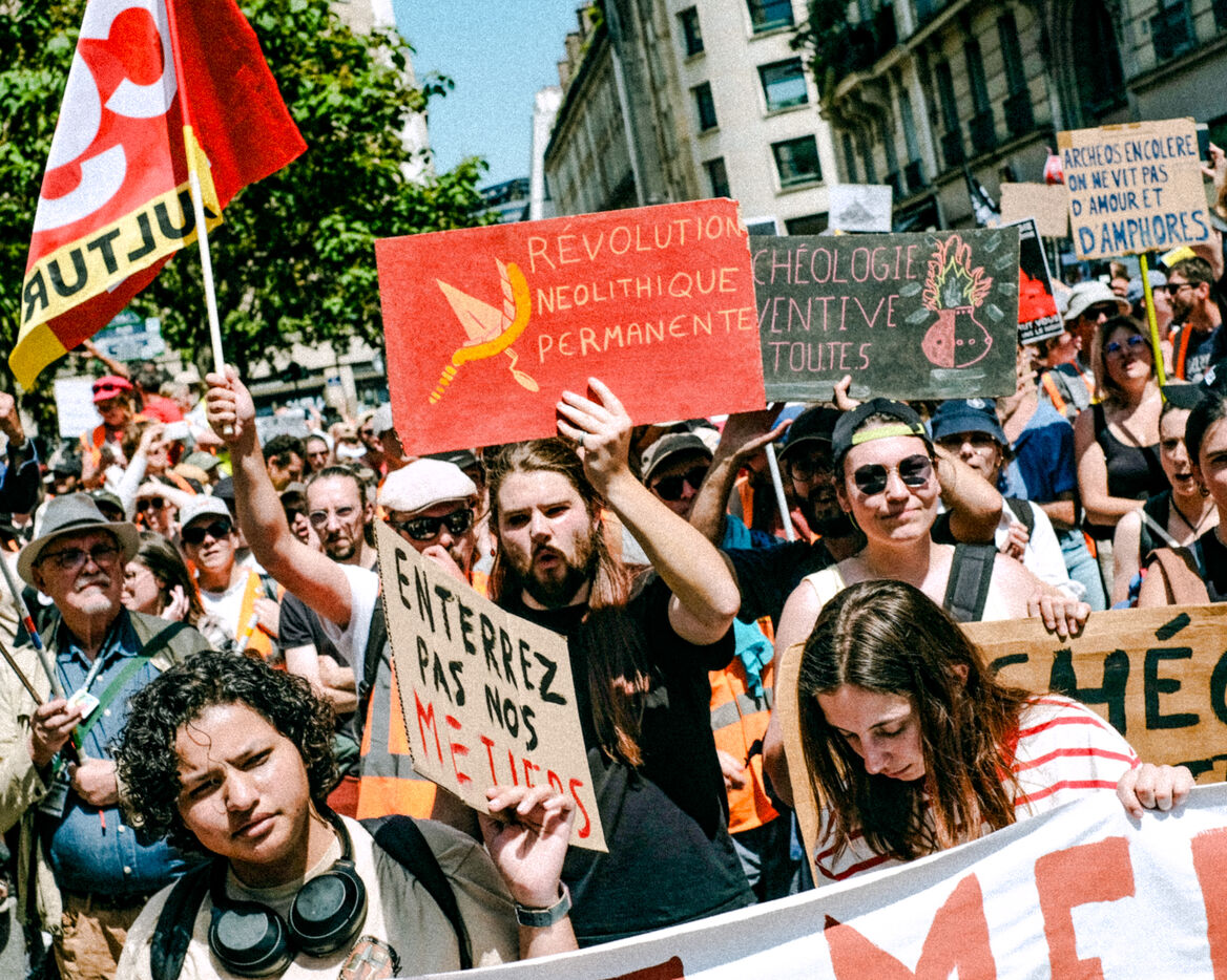 France, Paris, 2025/06/12. Grève et manifestation de l’ensemble de la communauté des archéologues le 12 juin à Paris pour défendre la discipline et le dispositif d’archéologie préventive Photographie par Alexandre Bré / Hans Lucas.