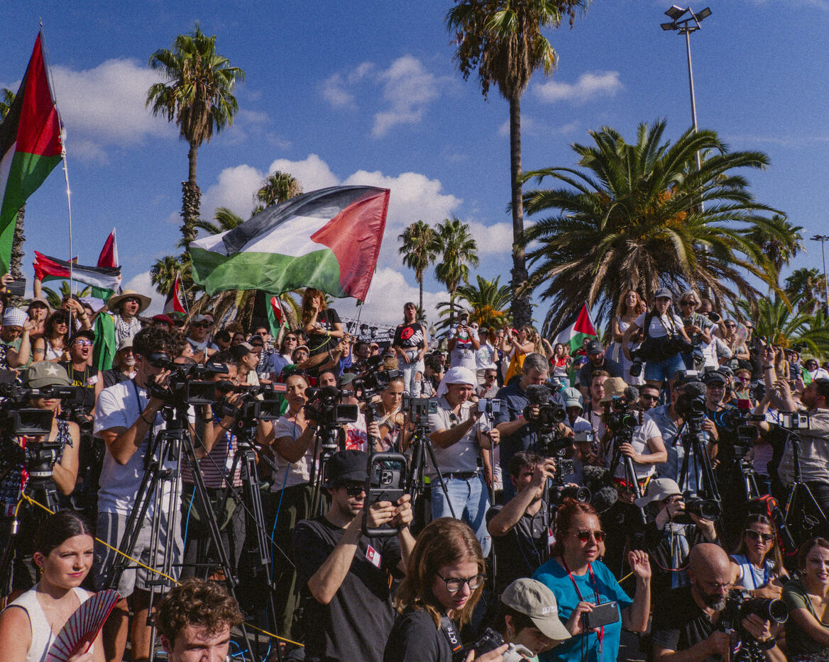 Spain, Barcelona, 2025/08/31. Activists from 44 countries, including Greta Thunberg, embark from Barcelona as part of the Freedom Flotilla 2025, the largest humanitarian mission to Gaza to date. The initiative aims to break the Israeli blockade and establish a humanitarian corridor. Photograph by Alexandre Bré / Hans Lucas.