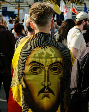 France, Paris, 2025/09/28. A rally against Christianophobia organized by various associations, including SOS Chrétiens d’Orient, to highlight the persecution of Christians in France and around the world.