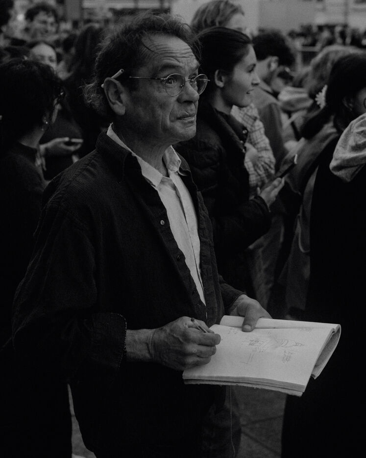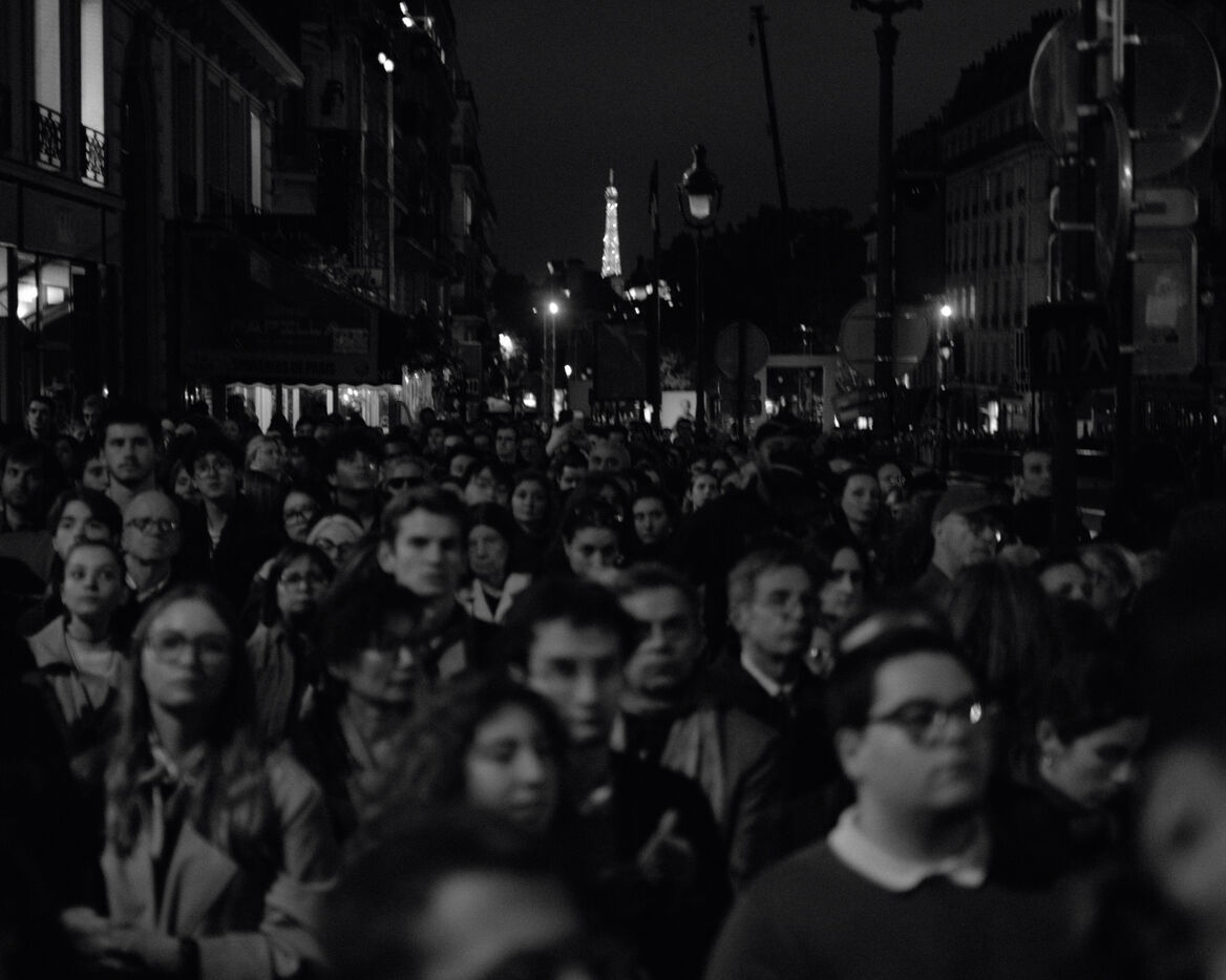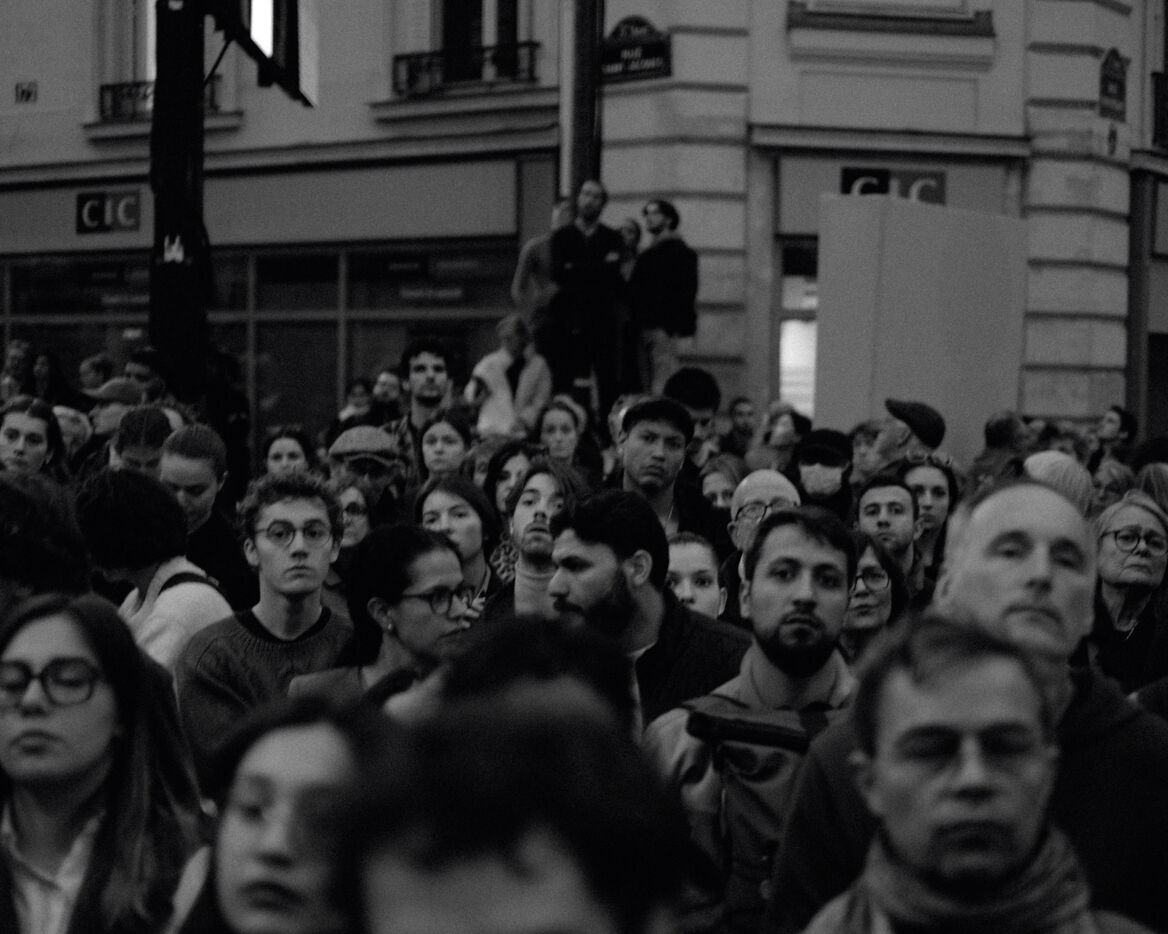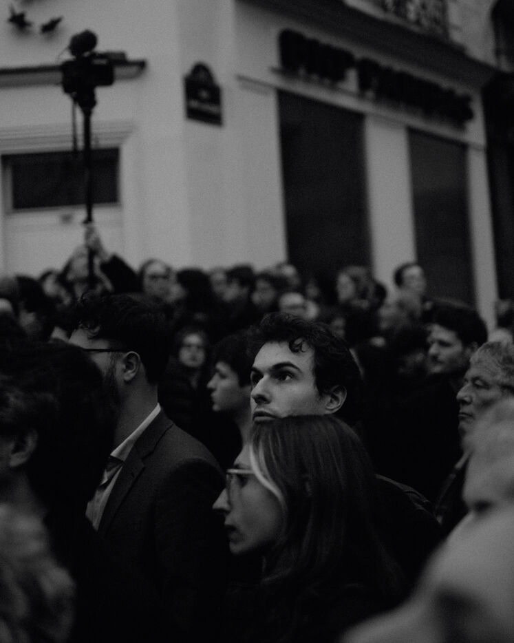 Des citoyens se rassemblent face au Panthéon lors de la cérémonie nationale en hommage à Robert Badinter, artisan de l’abolition de la peine de mort, accueilli symboliquement au Panthéon.
