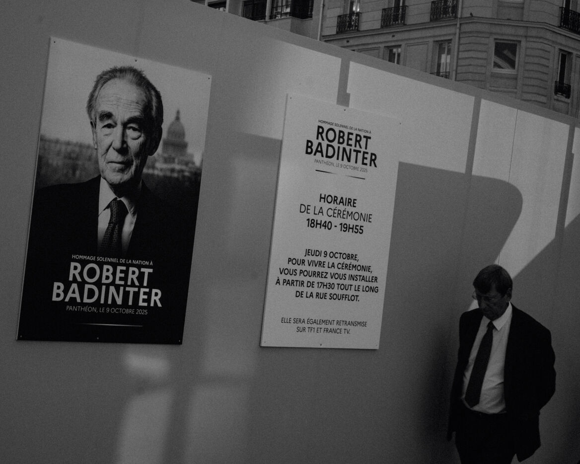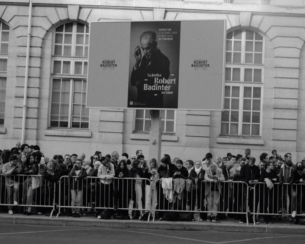 Citizens gather in front of the Panthéon during the national ceremony honoring Robert Badinter, the architect of the abolition of the death penalty, who was symbolically inducted into the Panthéon.