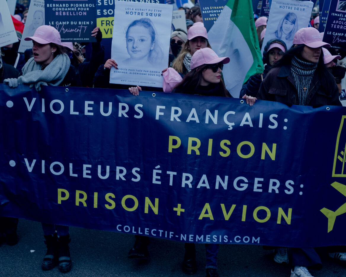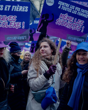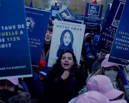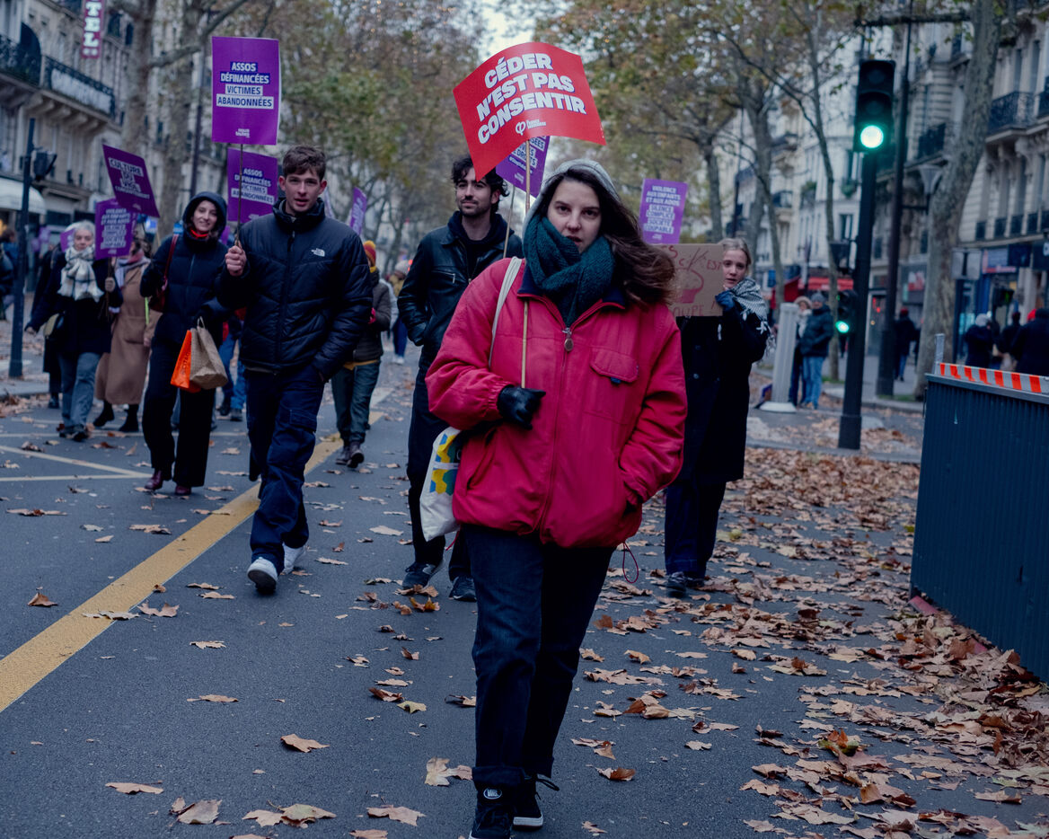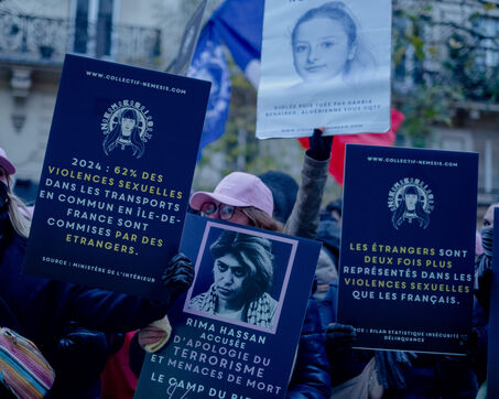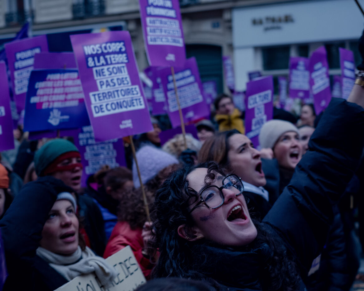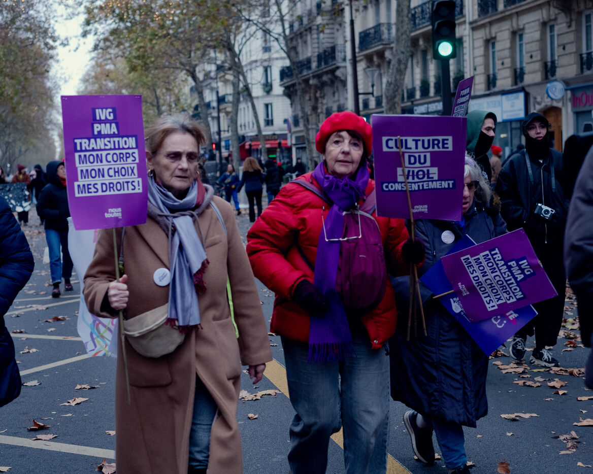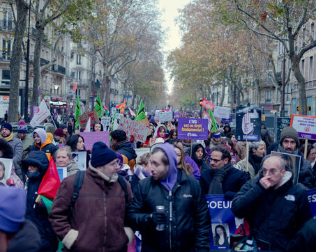 National rally organized by the NousToutes collective against violence against women, femicides, sexual assault, domestic violence, and gender-based violence. Thousands of people gathered at Place de la République before marching through the streets of Paris.