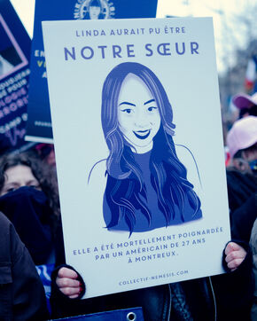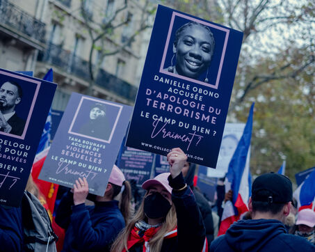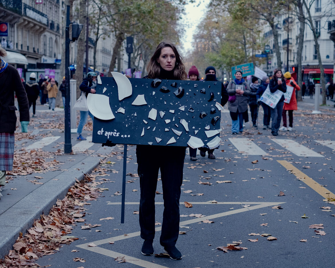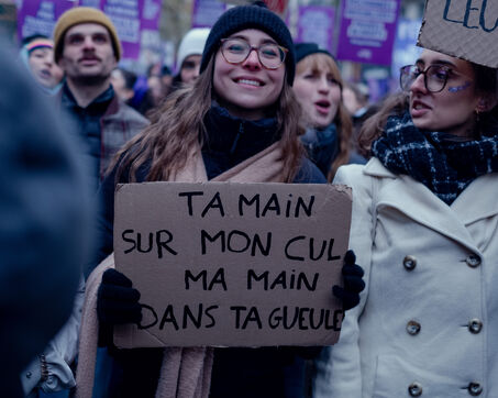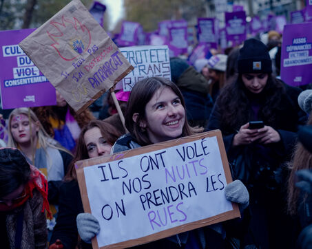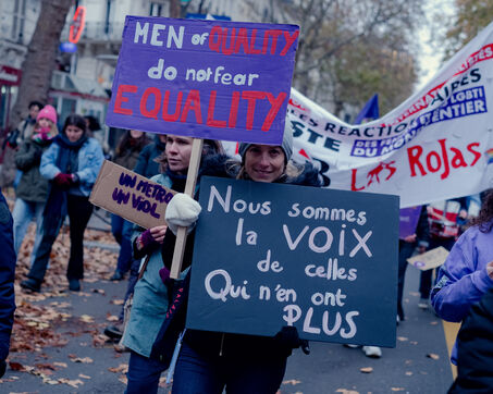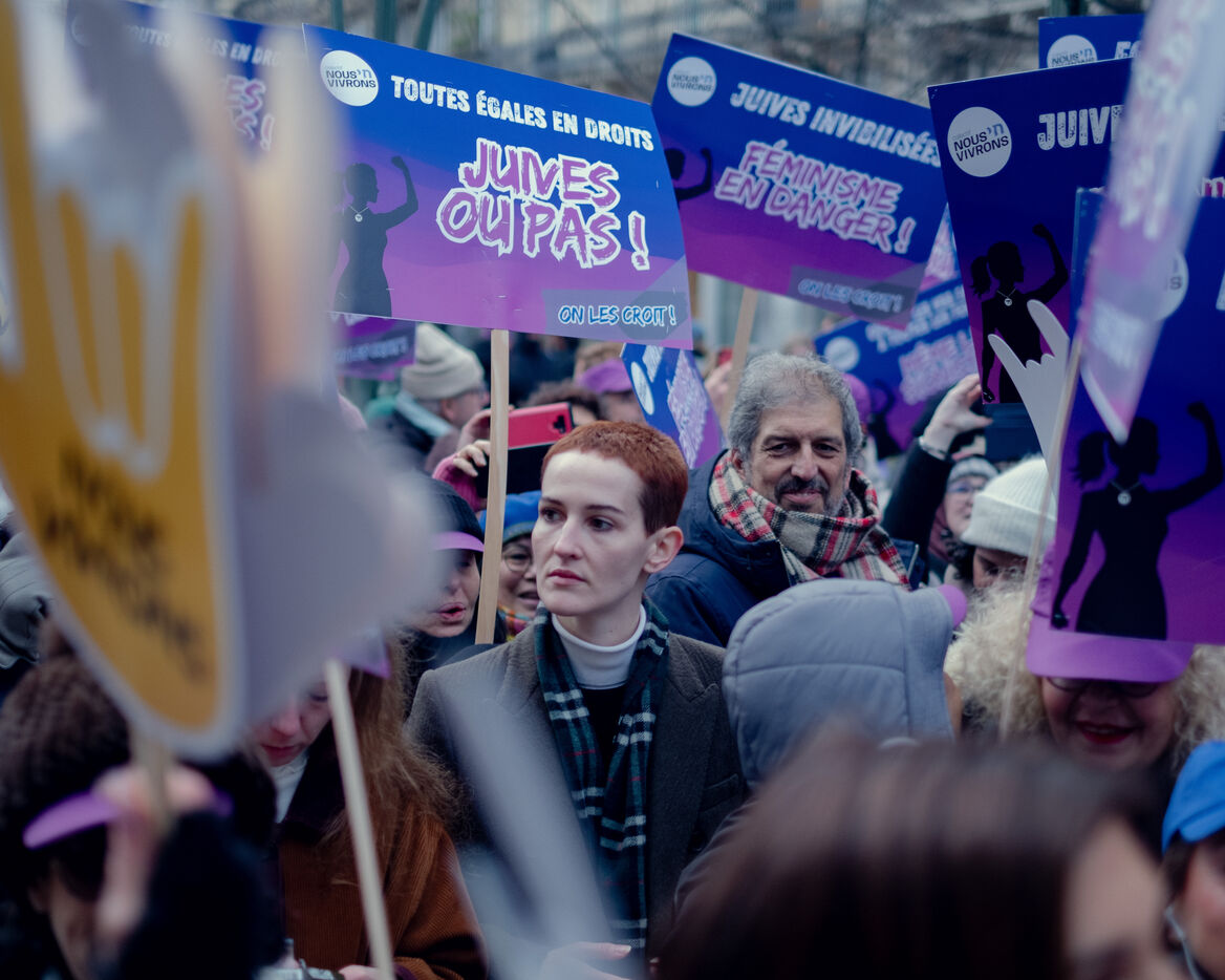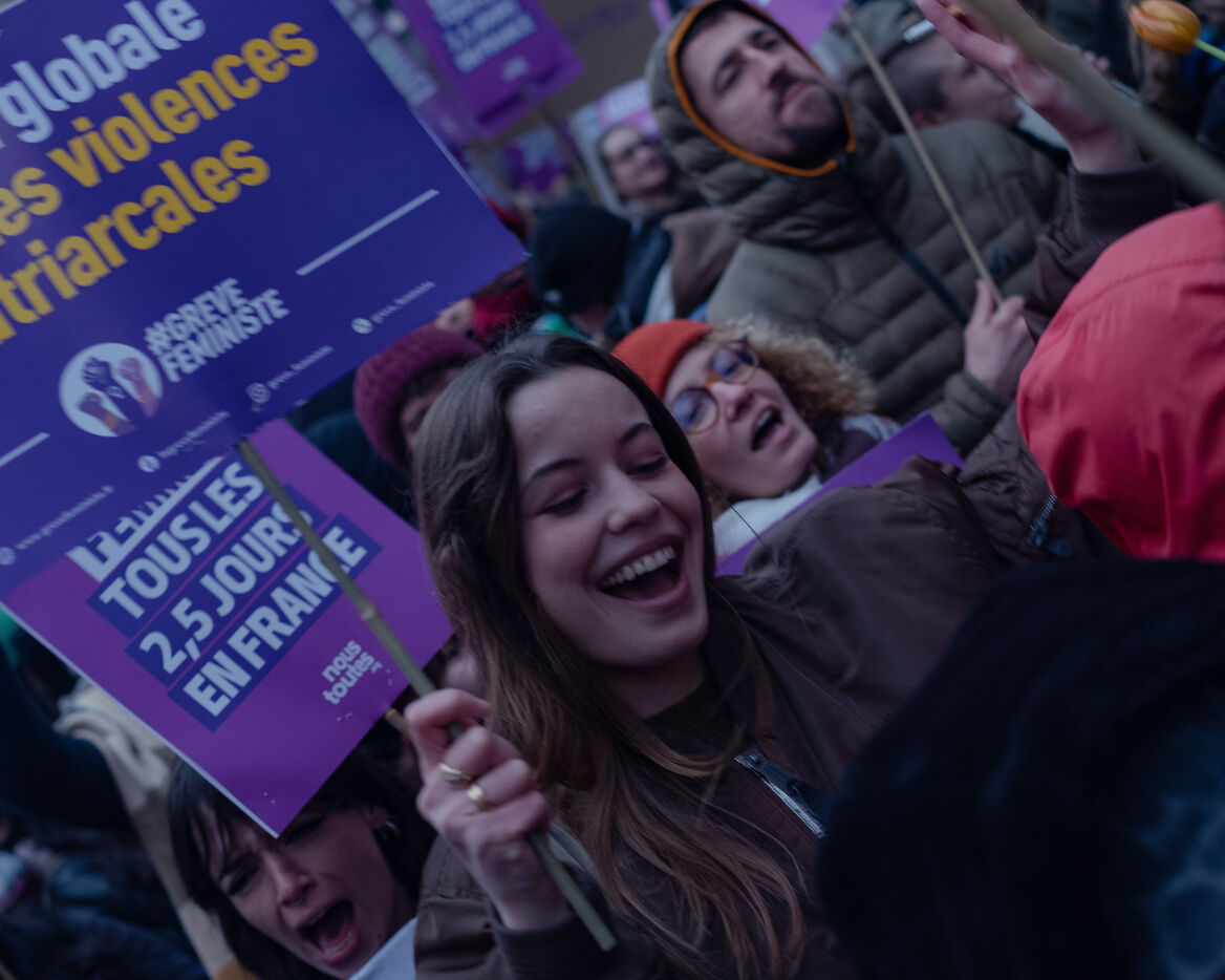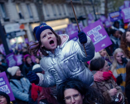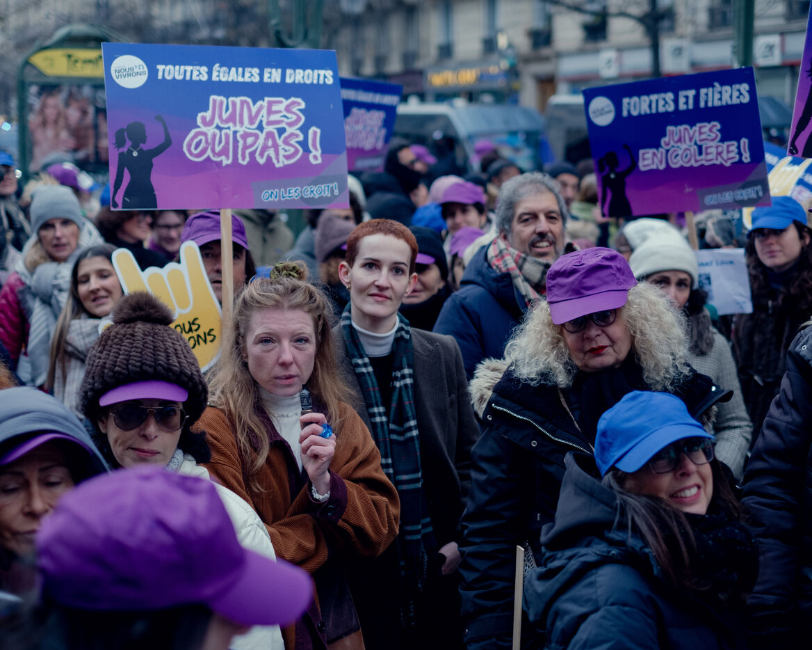 National rally organized by the NousToutes collective against violence against women, femicides, sexual assault, domestic violence, and gender-based violence. Thousands of people gathered at Place de la République before marching through the streets of Paris.