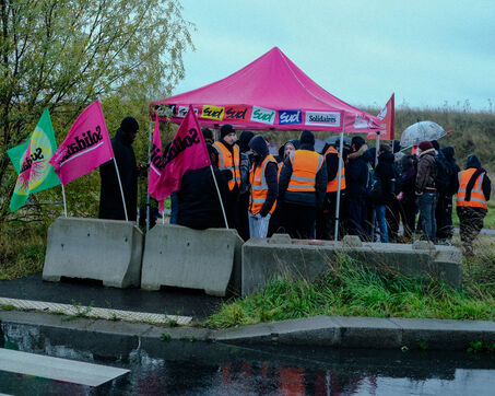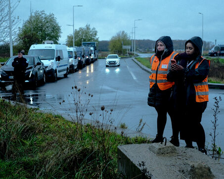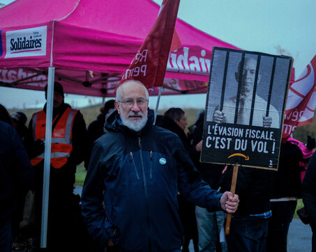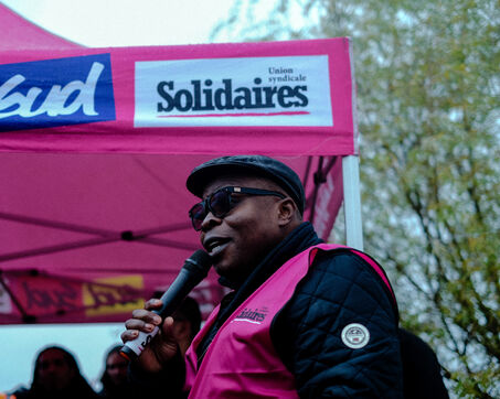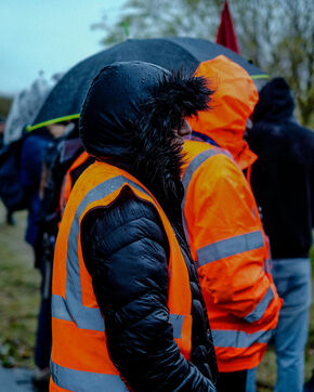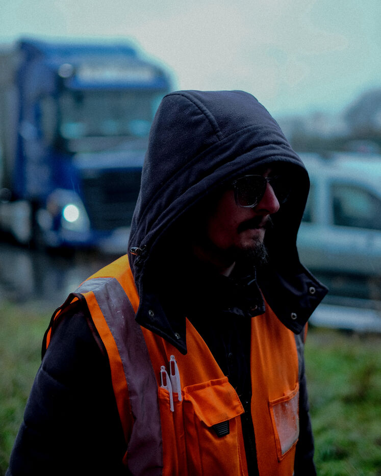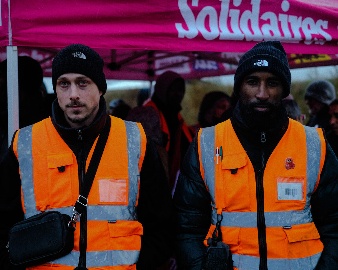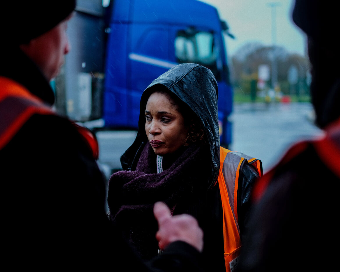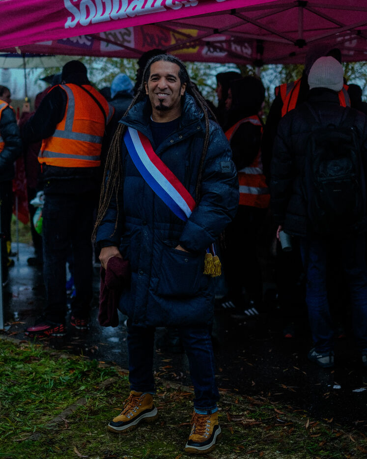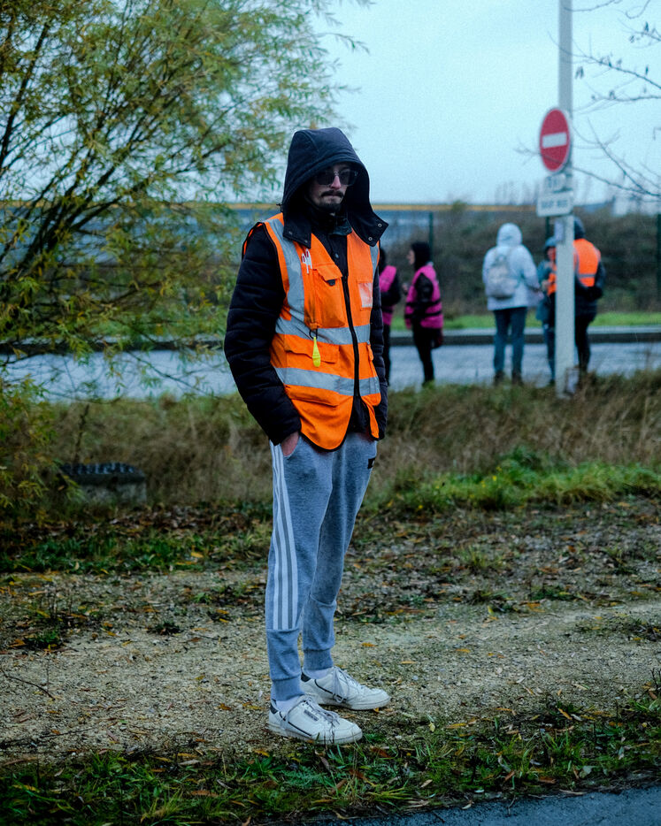France, Bretigny-sur-Orge, 2025/11/28. Strike and protest outside the Amazon warehouse, part of a mobilization against working conditions, low wages and managerial pressure within the e-commerce giant. The action is supported by several unions ahead of the Black Friday period.