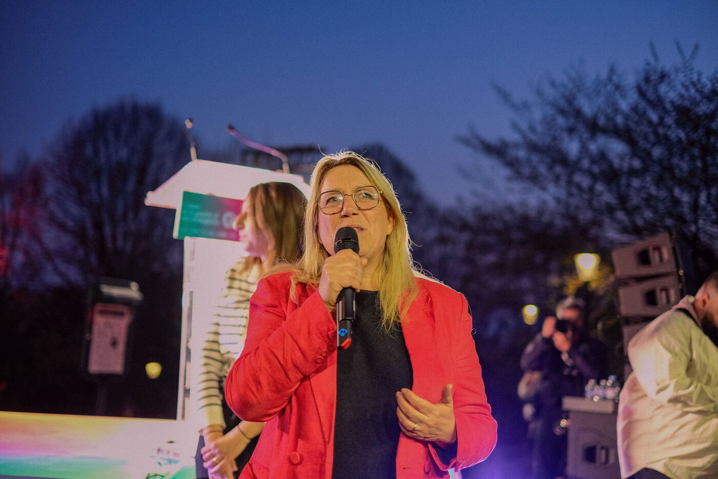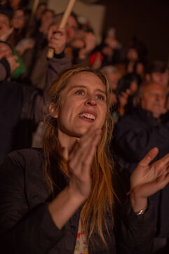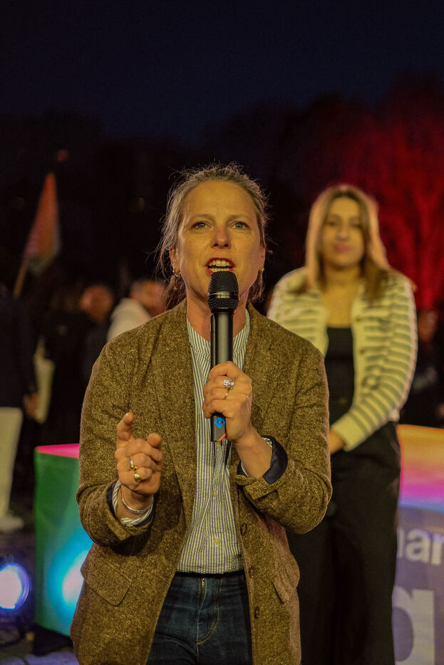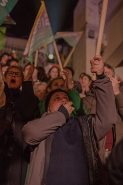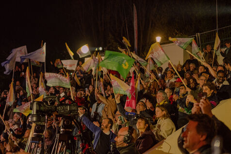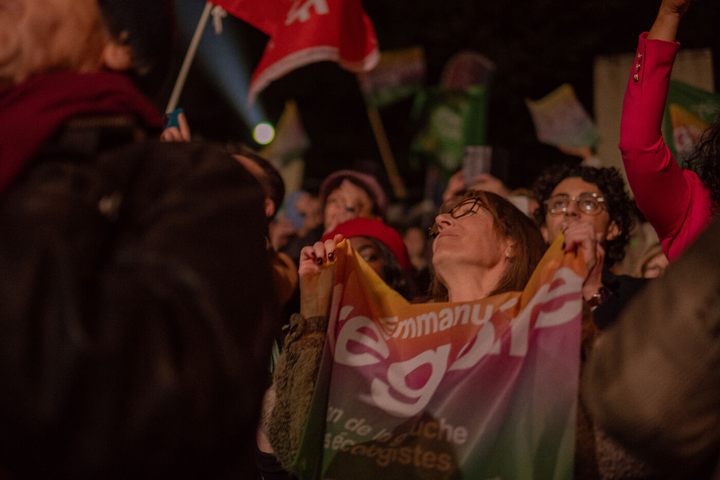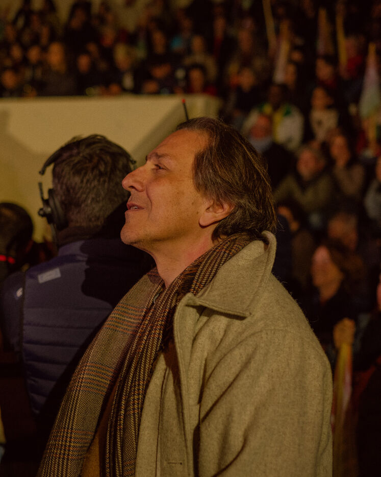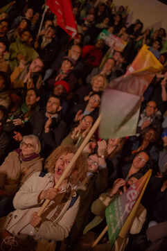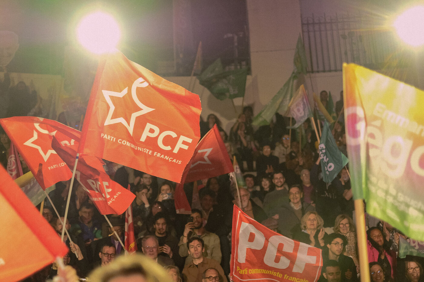 Paris, France, March 20, 2026: Supporters attend a political rally organised by the left-wing and Green coalition in Paris with mayoral candidate Emmanuel Grégoire. The meeting takes place at the Belvédère de Belleville in the 20th arrondissement as part of the municipal election campaign.