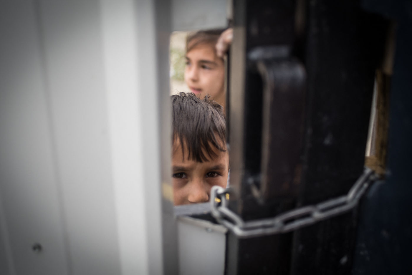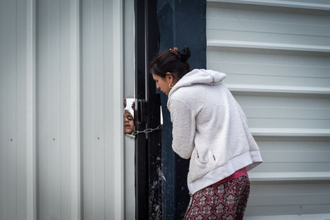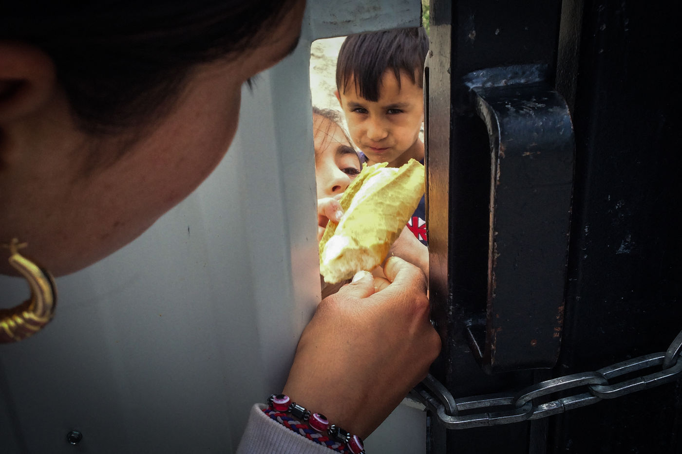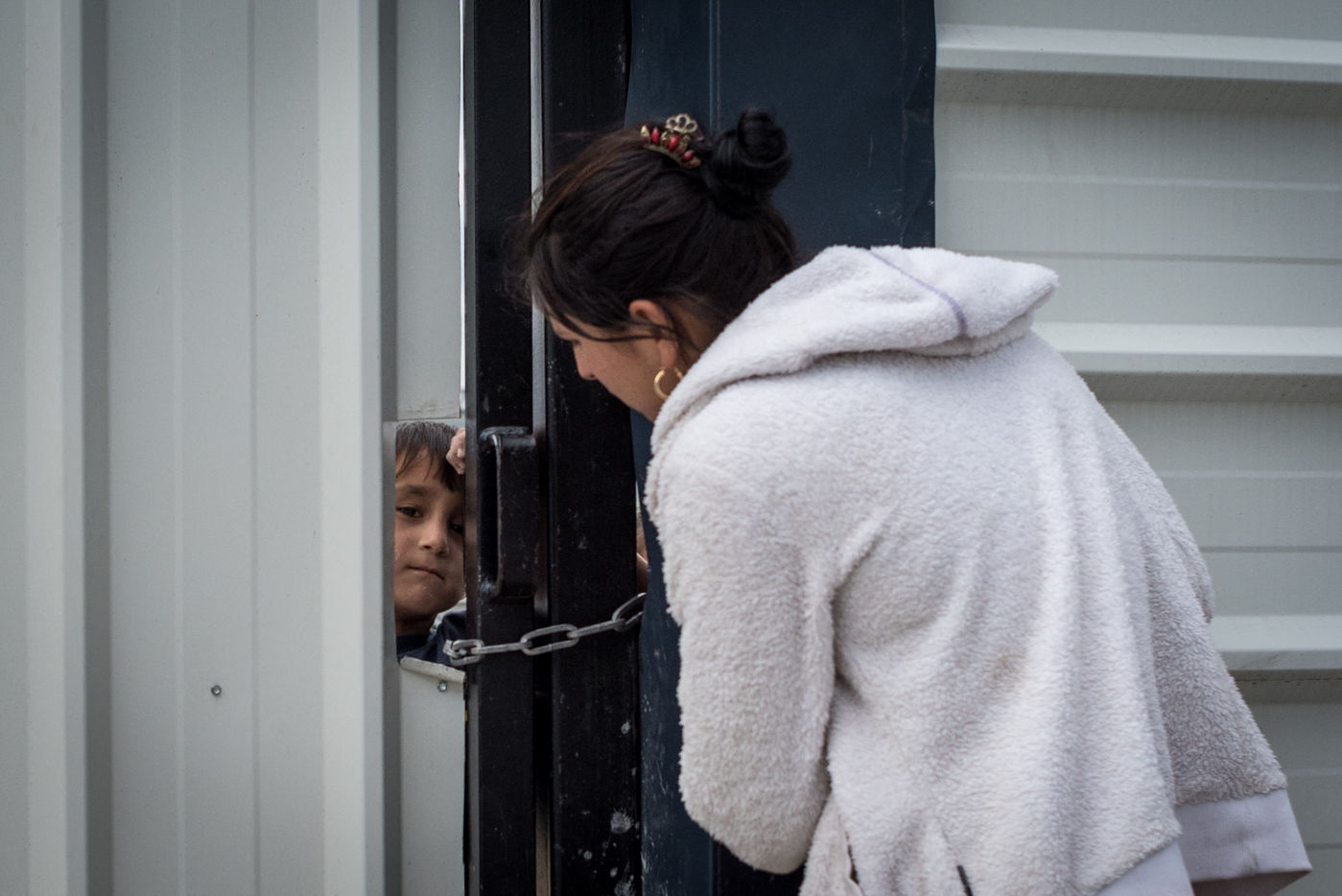 Sur les photos, on voit une des maman tentant de rassurer ses enfants et leur parlant et leur donnant à manger à travers un trou de la porte.