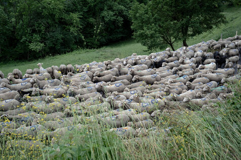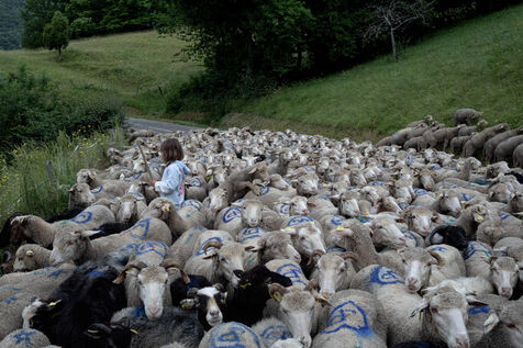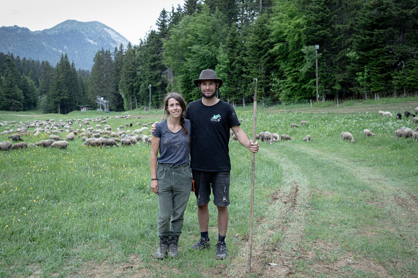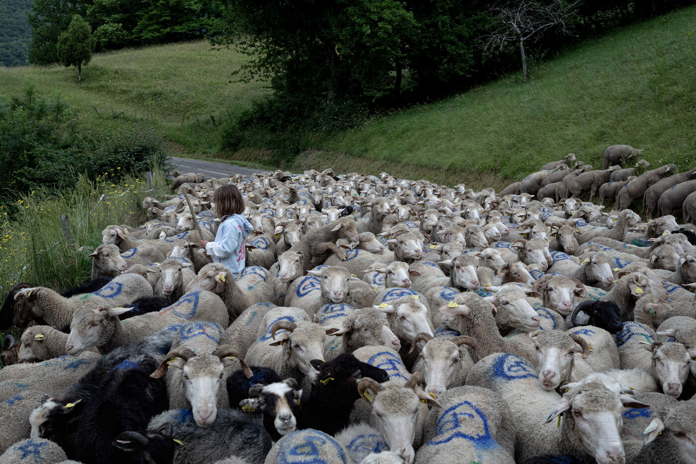 Summer transhumance to reach the mountain pastures at the Col de Porte at the foot of the Chamechaude summit in the Chartreuse massif. Lise, Eudes, and their flock of 450 ewes and lambs covered about fifty kilometers on foot over seven days, starting from Tullins (Isère) to reach their summer quarter. They were accompanied by their relatives.