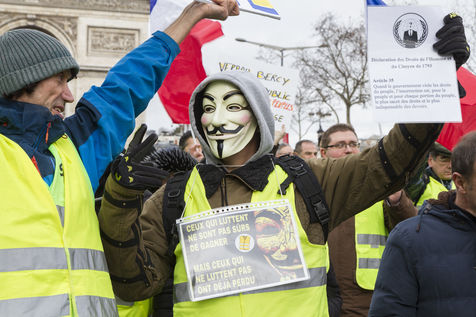 11th Yellow Vests mobilization day on Saturday, January 26, 2019 in Paris. At least two demonstrations declared this time, one starting from the Arc de Triomphe, the other from Vincennes, the two meet in Place de la Bastille. The demonstration took place quite calmly throughout the route, but there were some clashes with the police when the second procession joined the first one at Place de la Bastille. There were also on at least two occasions attacks by an extreme right-wing group on several people present in the procession.