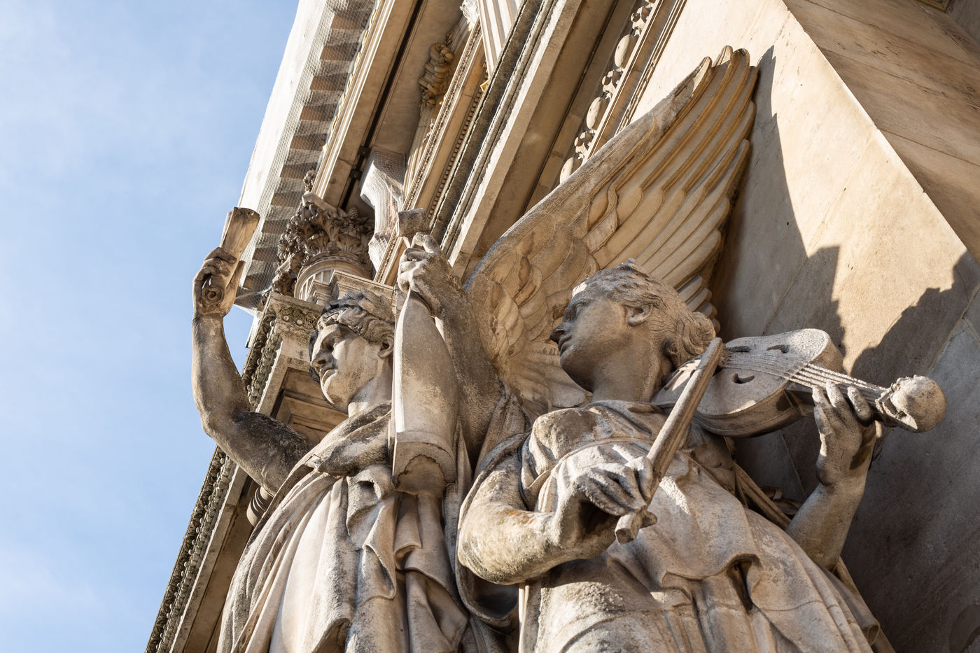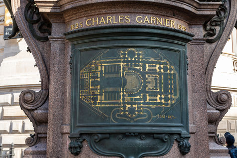 L'opéra Garnier, ou palais Garnier, est un théâtre national à vocation lyrique et chorégraphique et un élément majeur du patrimoine du 9e arrondissement de Paris et de la capitale. Il est situe place de l'Opéra. Des milliers de personnes passent tous les jours devant sans forcément voir certains détails. Paris, France, Septembre 2019.