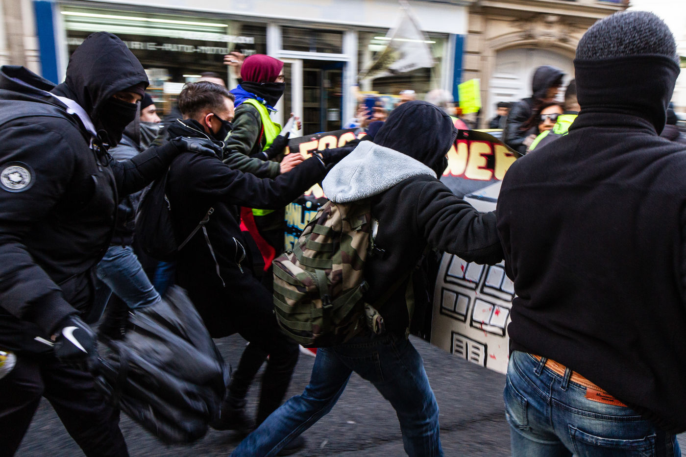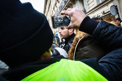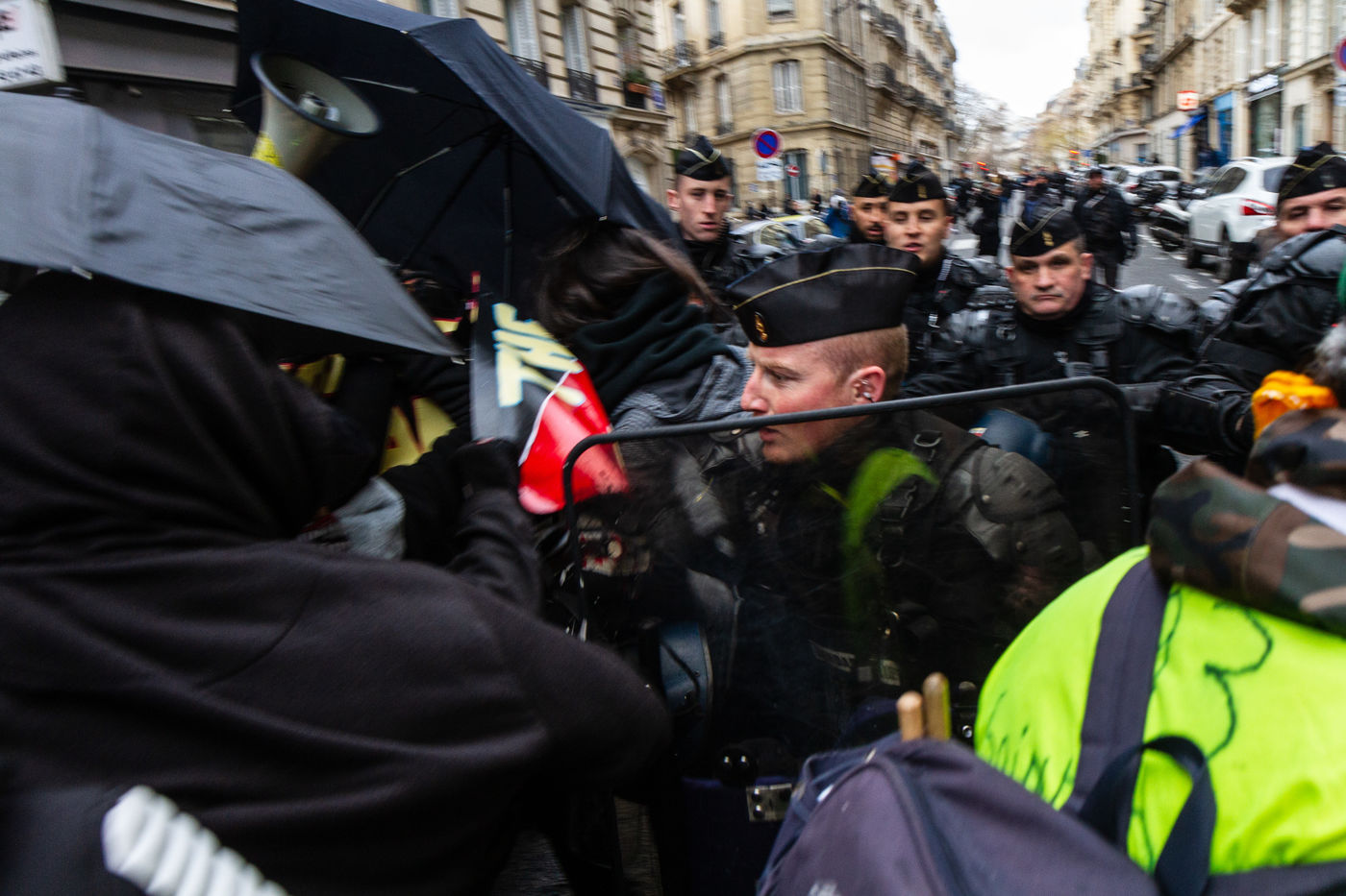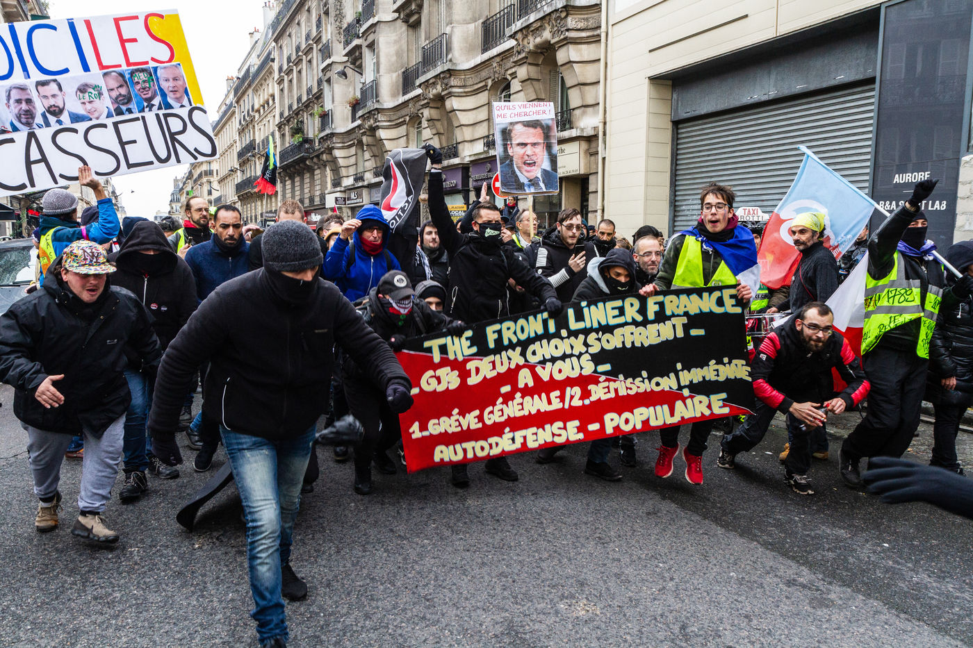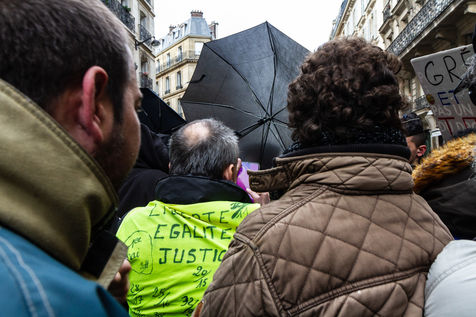 Act 57 "all together" of the Yellow Vests. A unique demonstration, declared separately by two groups: Inda Inda, Nejeh Ben Farhat and Decla ta manifesto by Sophie Tissier and Valerie Vidal. Paris, France, Saturday 14 December 2019.