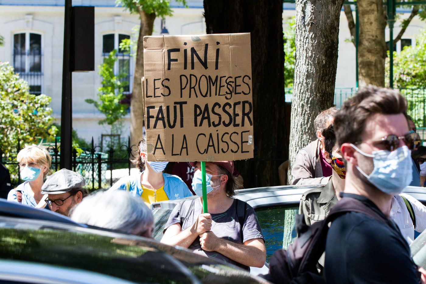 Gathering to support and pay tribute to the caregivers in front of the Tenon Hospital in the 20th arrondissement. Paris, France, Wednesday 20th May 2020.