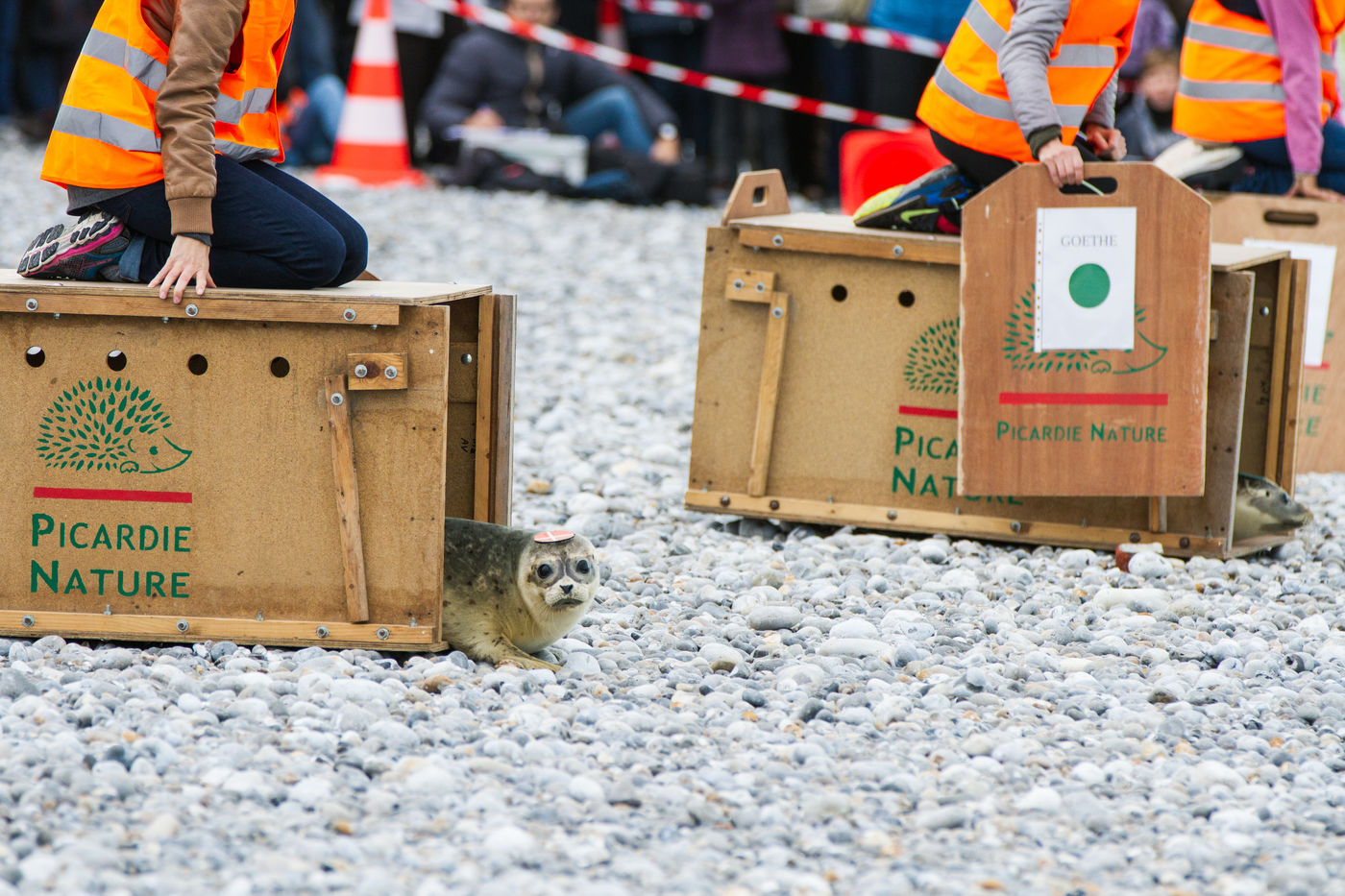 Le samedi 22 octobre 2016, quatre phoques veaux-marins (Phoca vitulina) ont été relâchés à Le Hourdel, un hameau situé au sud de la Baie de Somme. Sous l'oeil des curieux et des amoureux de la nature venus admirer le spectacle, Linné, Cuvier, Belon et Goethe ont rejoint la mer. Alors qu'ils avaient été découverts échoués et en détresse après avoir été séparés de leur mère, les quatre animaux, nés durant l'été 2016, ont été accueillis et soignés par l'association Picardie Nature. Après plusieurs mois de soins au sein du centre de sauvegarde de la faune sauvage, les jeunes phoques ont donc pu être relâchés dans leur milieu naturel.