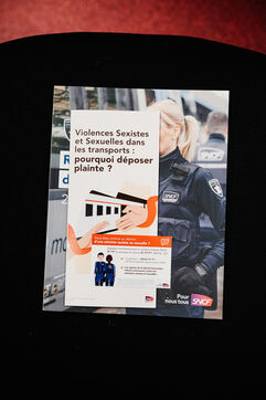Visit by France's Transport Minister to the SNCF's rail security offices to mark the day of action against violence against women, who are the first victims of sexist and sexual assaults on public transport, in Paris, France on November 25, 2024. A discussion with the operators of 3117 (a free telephone hotline for reporting acts of violence witnessed or suffered by people) and the rail safety teams (SUGE, SNCF rail police) who protect the French people on a daily basis.