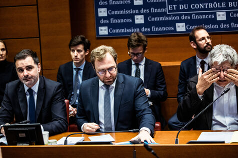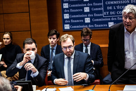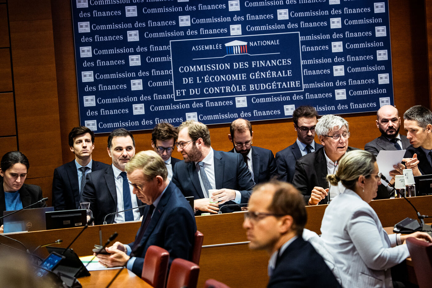 Hearing of the resigning France's Minister for the Economy, Finance and Industry Antoine Armand, and the resigning France's Minister for the Budget and Public Accounts Laurent Saint-Martin, to present the government's special bill authorising the collection of taxes for the 2025 budget, by the deputies of the National Assembly's Finance Committee, in Paris, France on December 11, 2024.