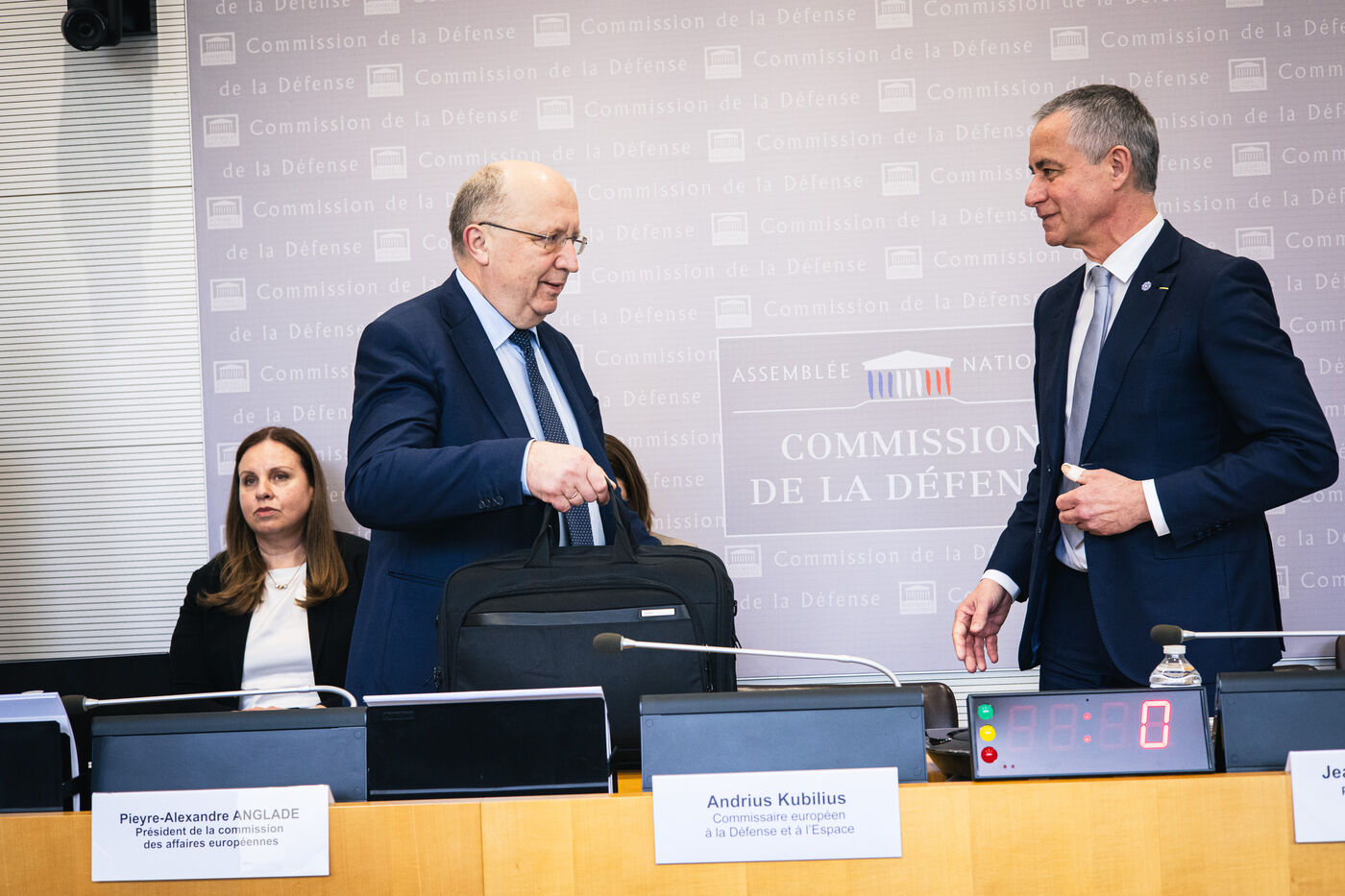 Hearing of the European Commissioner for Defence and Space, Andrius Kubilius, by the members of the National Defence and Armed Forces Committee and the European Affairs Committee at the National Assembly in Paris, France on March 25, 2025.