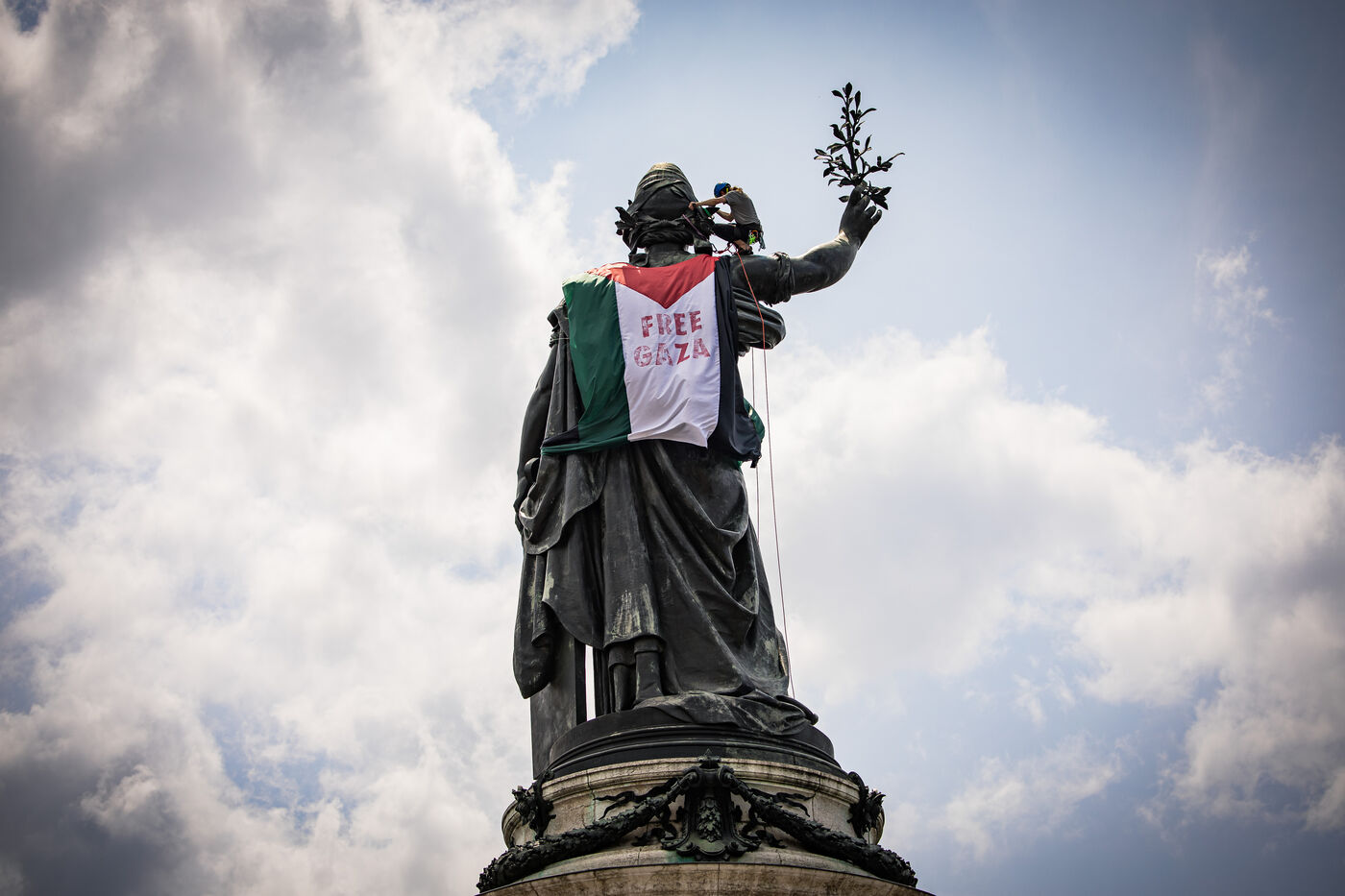 Demonstration in support of the Palestinian population, victims of the war between Hamas and the Israeli army following the terrorist attacks of 7 October 2023, to call for a ceasefire and an end to the genocide in the Gaza Strip, starting from the Place de la Republique in Paris, France on June 14, 2025. Conflict between Israel and Palestine.