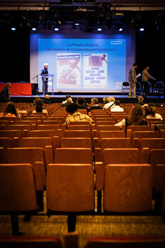 Évènement "Procès Bolloré, les médias de la haine devant le tribunal", procès symbolique parodique organisé par Le Fonds pour une Presse Libre (pour une presse libre et indépendante), sous la forme d'une réunion publique à l'Espace Reuilly à Paris, France le 30 Septembre 2025. Témoignages de journalistes lauréats du FLP sur les coulisses de leurs enquêtes sur l’extrême-droite, sa galaxie et ses relais, puis mise en scène d'une audience judiciaire à partir de chefs d’accusation inédits contre les idées d'extrême droite propagées par les médias du groupe Bolloré (C8, CNEWS, Europe 1, Le Journal du Dimanche - JDD, etc).