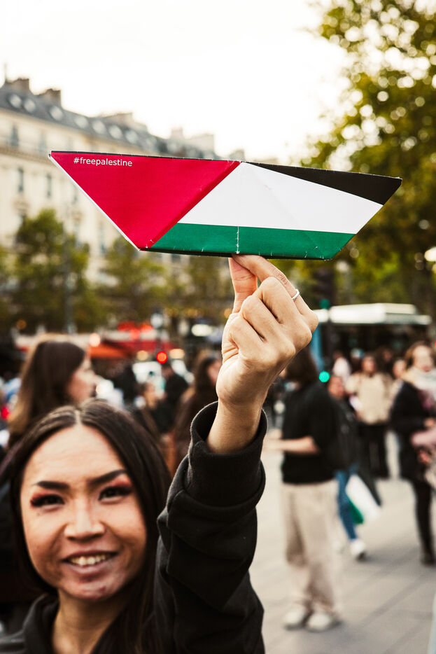 Manifestation de soutiens pour la libération des équipages des bateaux de la flottille humanitaire Global Sumud