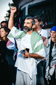 Manifestation pour fêter le retour des equipages des bateaux de la flottille humanitaire Global Sumud - Paris - 8 Octobre 2025
