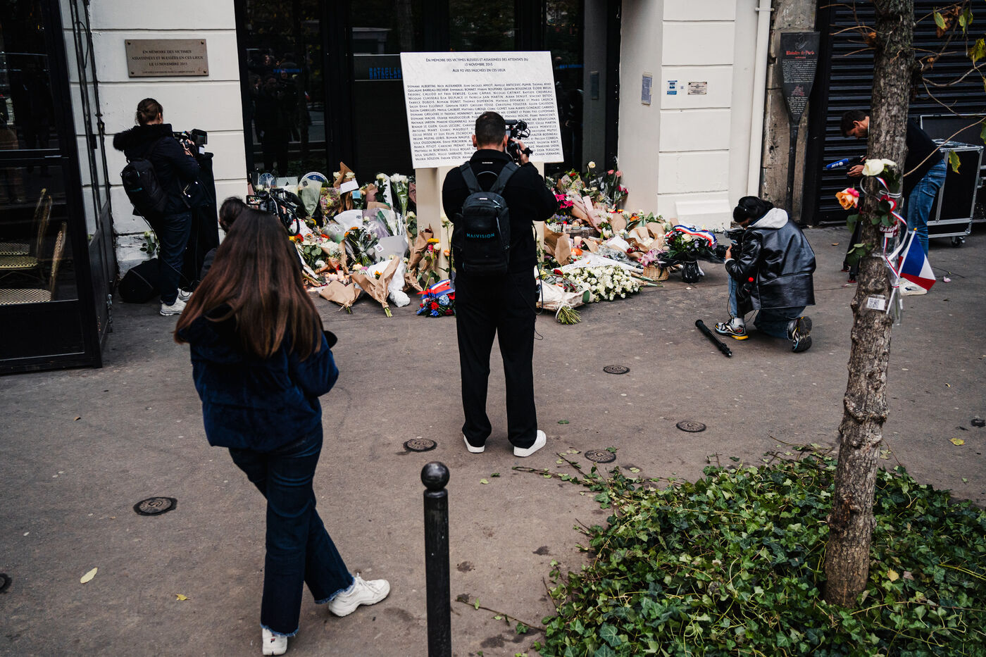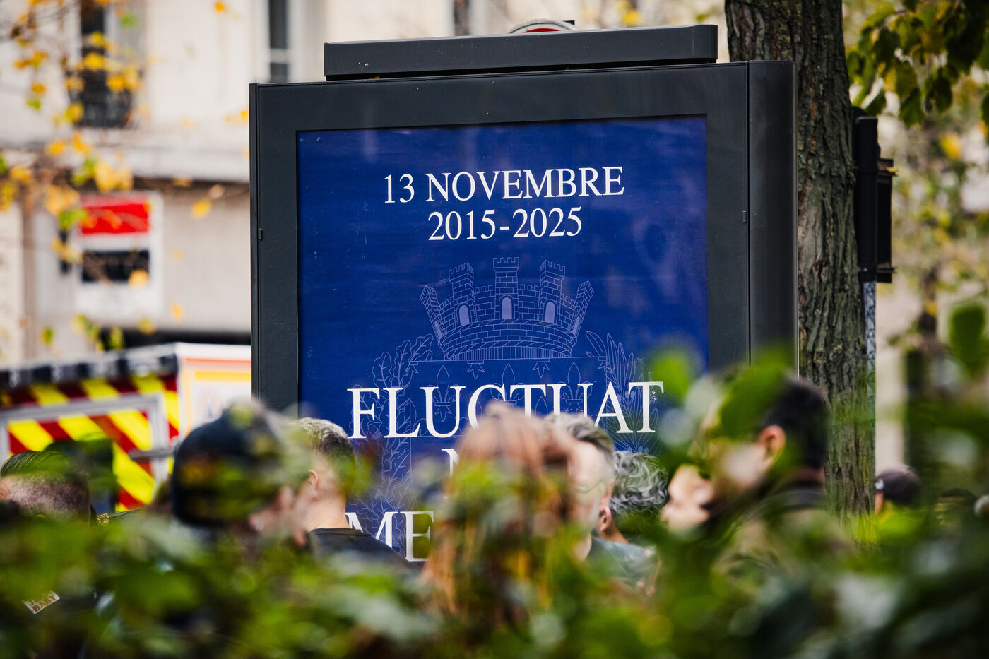 Commemoration ceremony in tribute to the victims of the jihadist terrorist attacks of 13 November 2015 in front of the Parisian concert hall Le Bataclan, in Paris, France on November 13, 2025. Ten years later, Paris remembers.