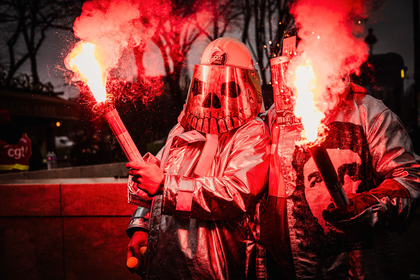 Demonstration by steelworkers at the French sites of the ArcelorMittal group (France's leading steel producer, steelworks, steelworks) at the call of the CGT (Confederation Generale du Travail) trade union next to the National Assembly as a bill for the nationalisation of the company is to be debated during the day (LFI parliamentary niche, left-wing opposition political party), on the Esplanade des Invalides in Paris, France on November 27, 2025.