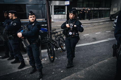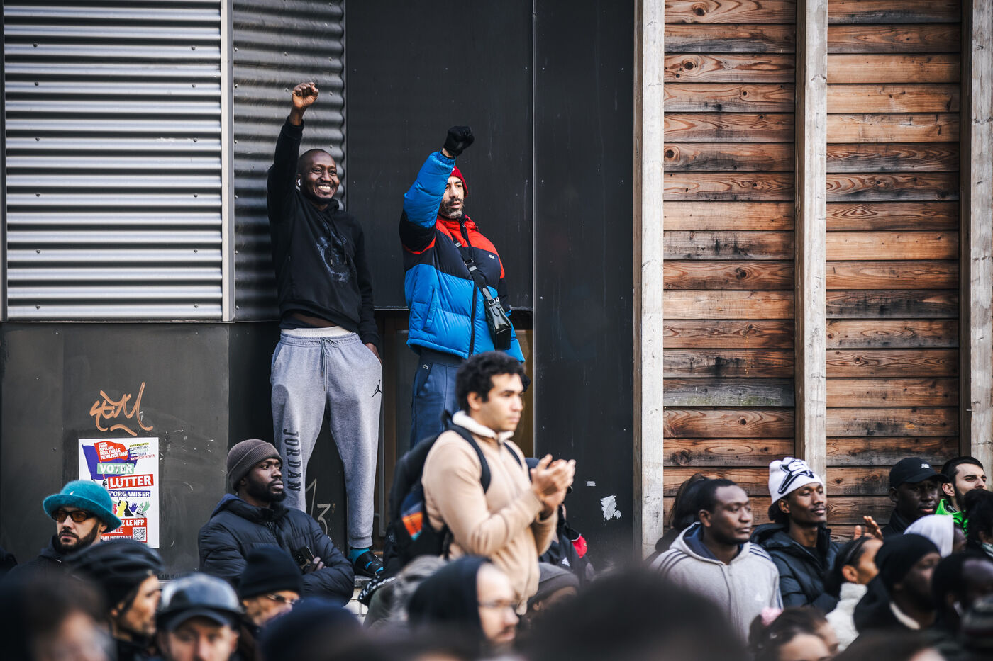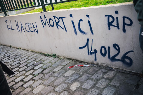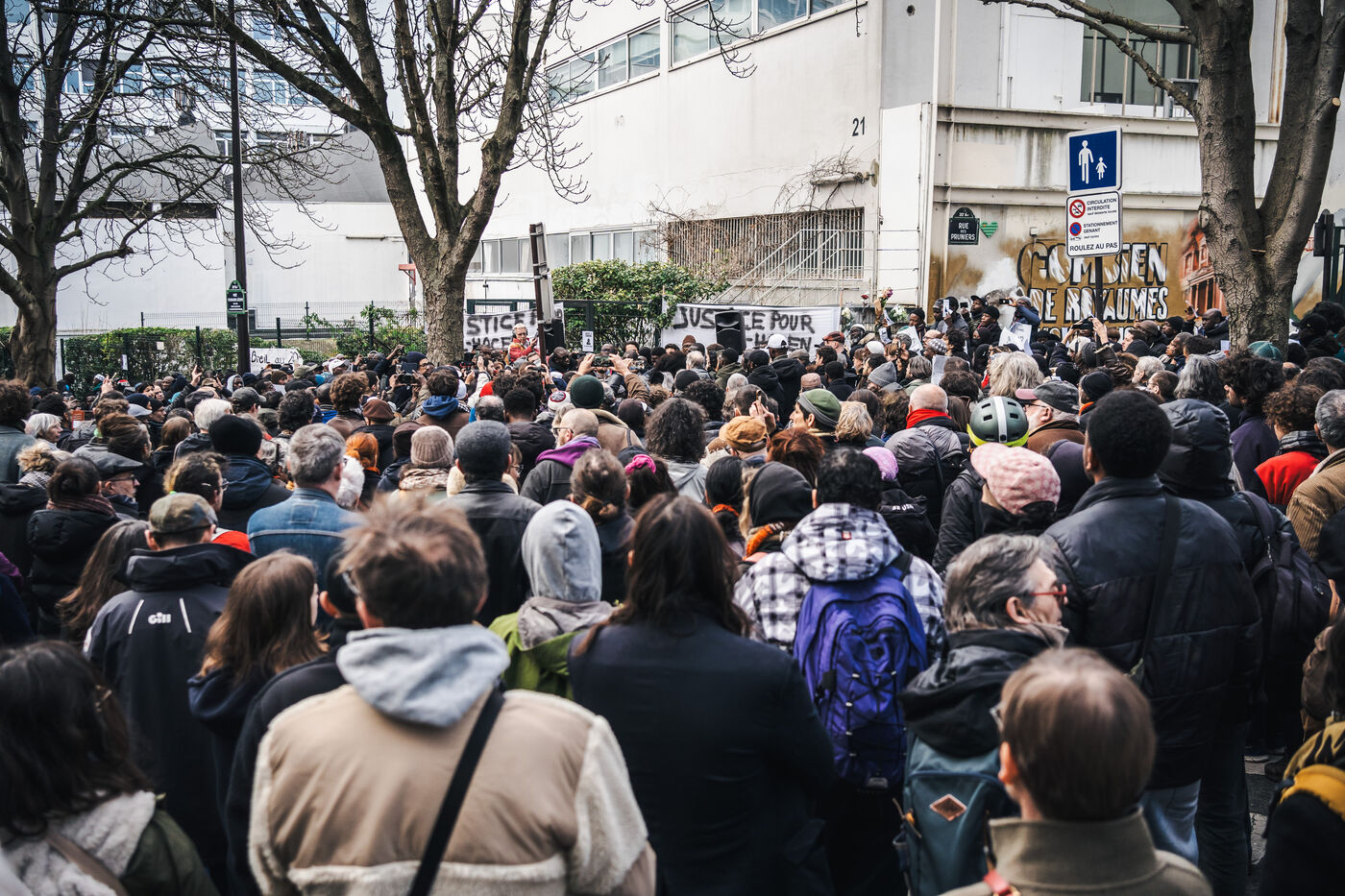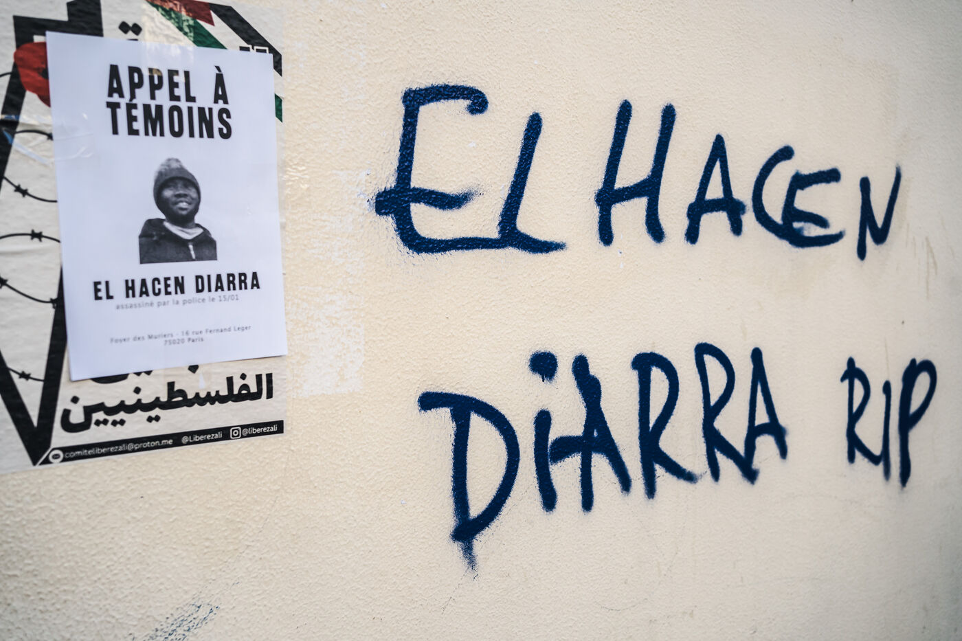 Gathering for El Hacen Diarra in front of the Les Muriers shelter on Rue Ferdinand Leger in Paris, France on January 18, 2026. El Hacen Diarra died in police custody following a cardiac arrest on the night of Wednesday 14 to Thursday 15 January around midnight at the central police station in the 20th arrondissement following an arrest involving the use of a taser by police officers for possession of narcotics, a complaint has been filed by the family for police violence.