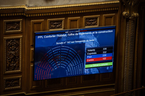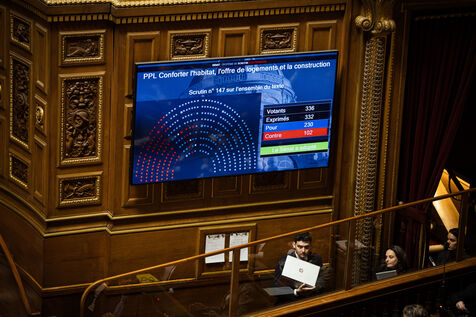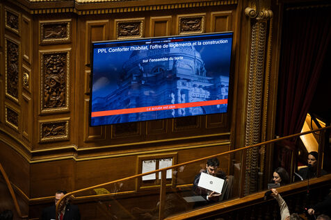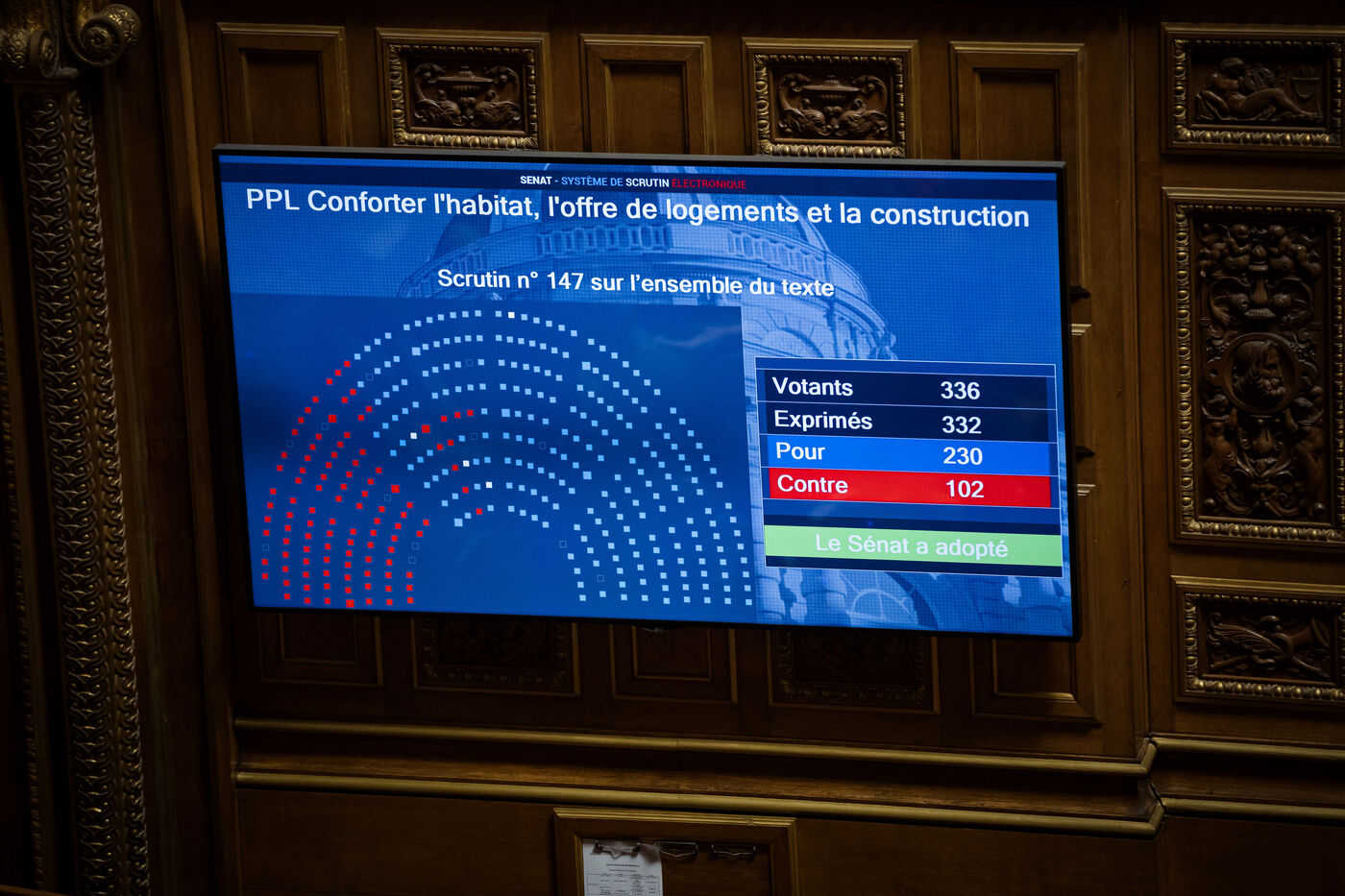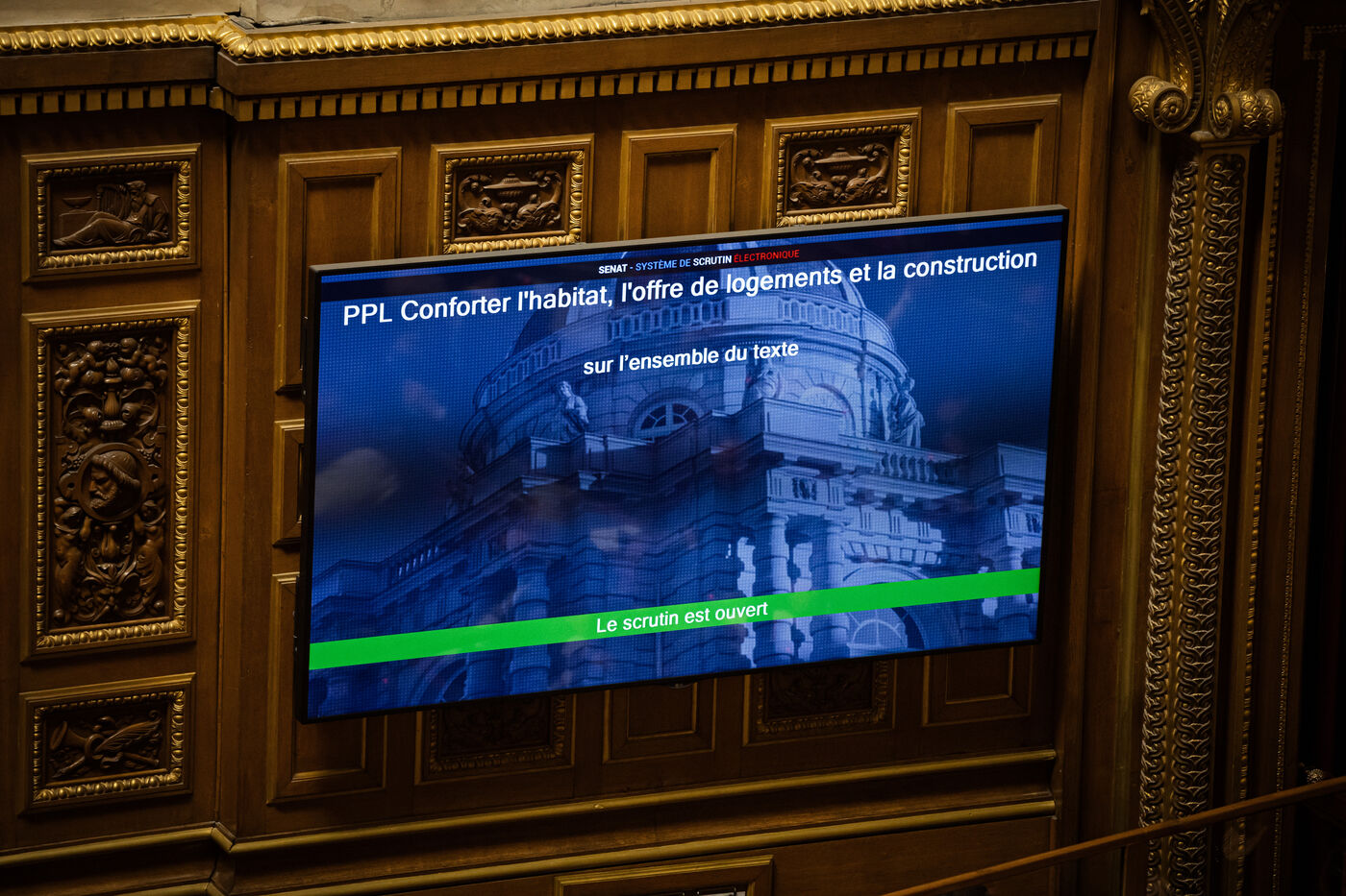 Explanations of vote and formal vote on the bill aimed at strengthening housing, housing supply and construction in the Senate chamber, the upper house of the French Parliament in Paris, France on January 20, 2026. Senators adopted the PLL CHOC bill during the vote.