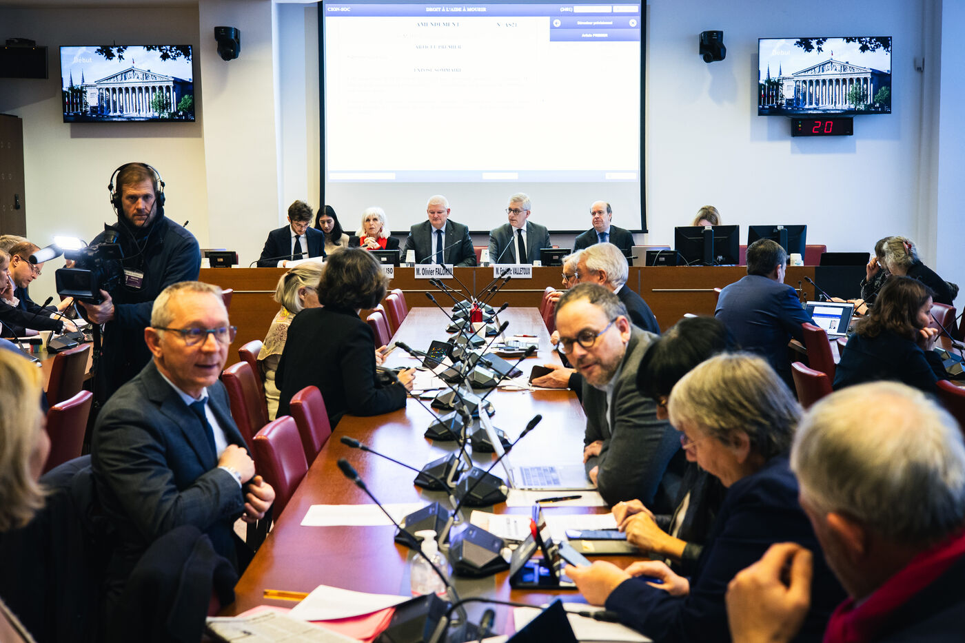 Second reading of the bill rejected by the Senate on the right to assisted dying (number 2401) by members of the Social Affairs Committee of the National Assembly in Paris, France on February 4, 2026. The bill addresses end-of-life care, euthanasia and equal access for all to support and palliative care.