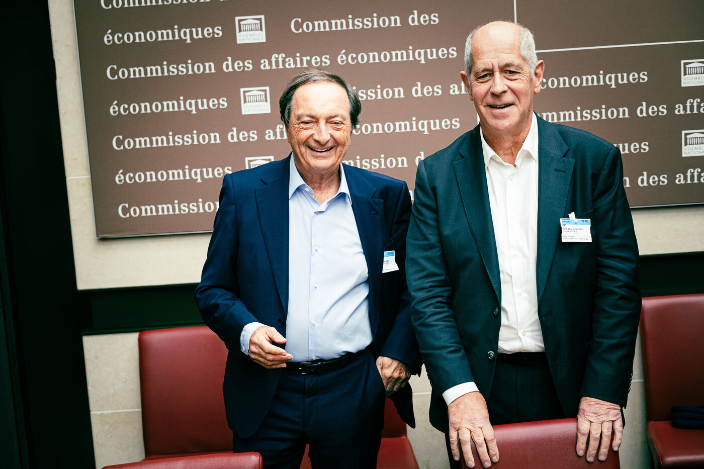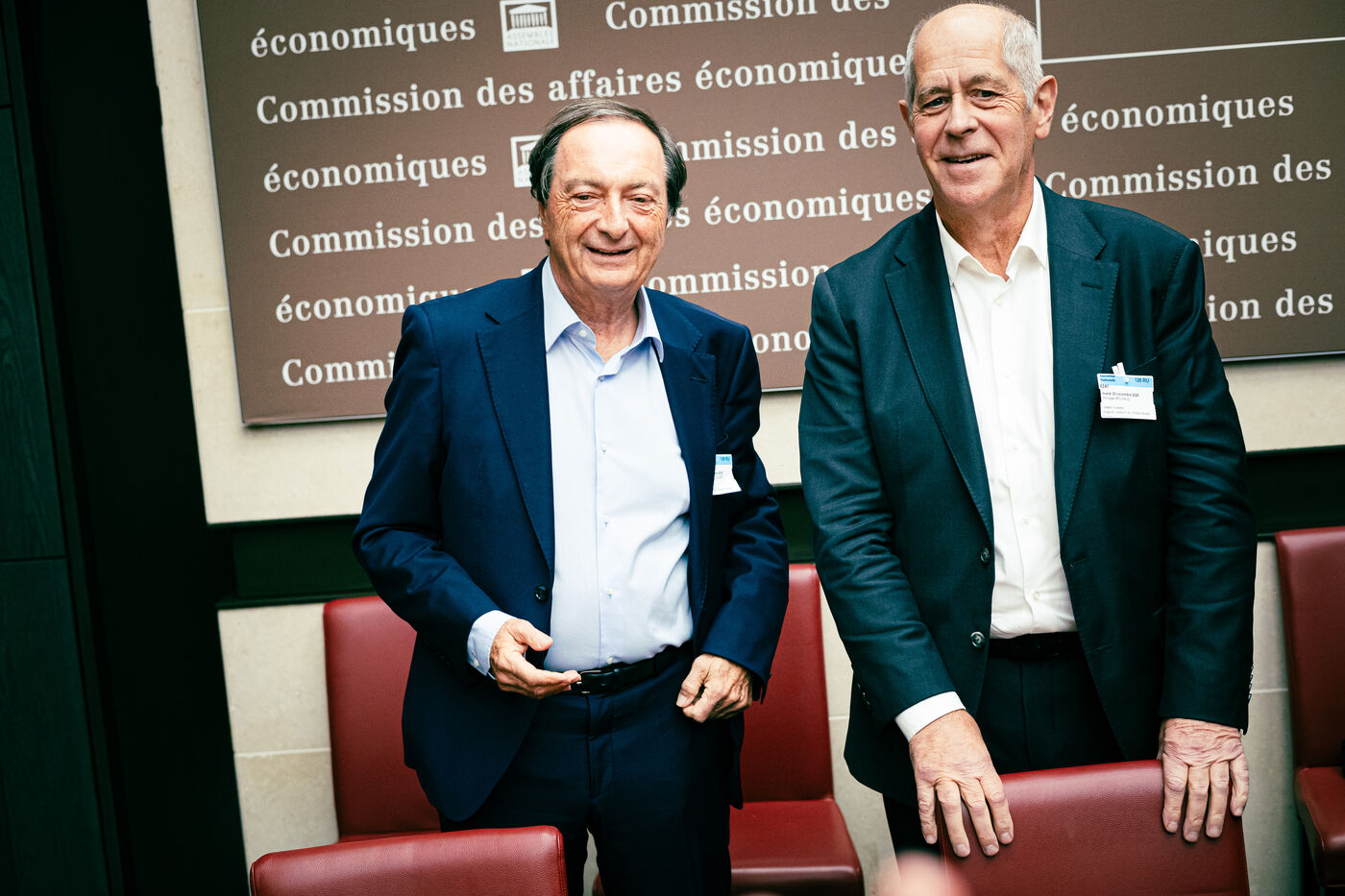 Hearing of representatives of the E Leclerc movement by members of the Economic Affairs Committee of the National Assembly in Paris, France on November 25, 2025. They were questioned about the situation of the E Leclerc group, as well as distribution, relations with suppliers, price formation and consumption.