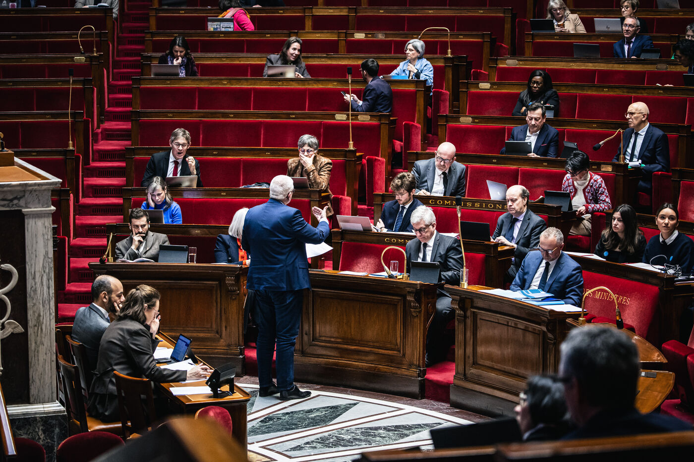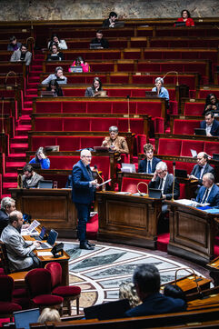 Examination in session and debate of the proposed laws relating to the right to assisted dying (also known as the End-of-Life Bill) and equal access for all to palliative care and support in the chamber of the National Assembly, the lower house of the French Parliament in Paris, France on February 19, 2026.