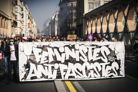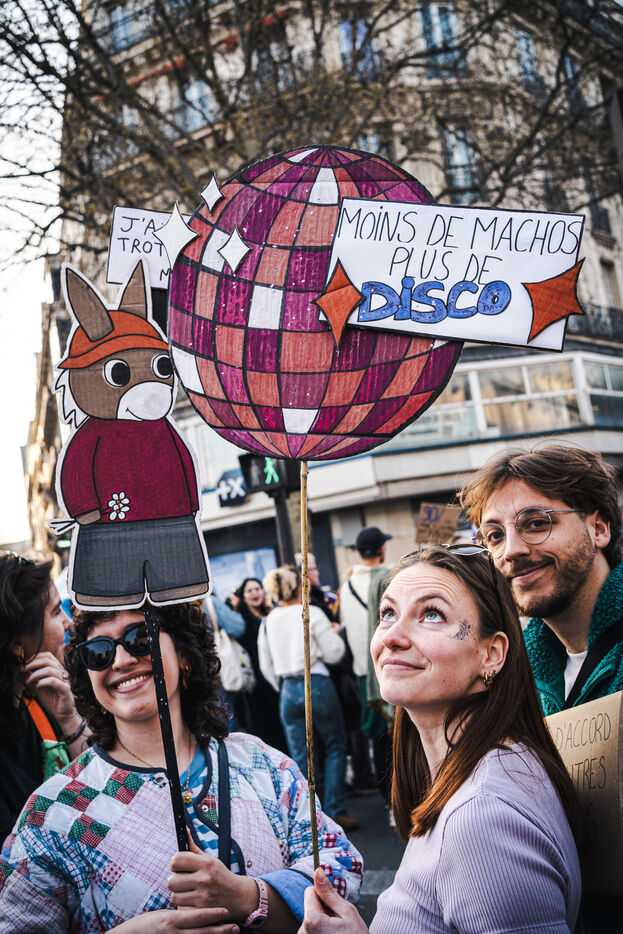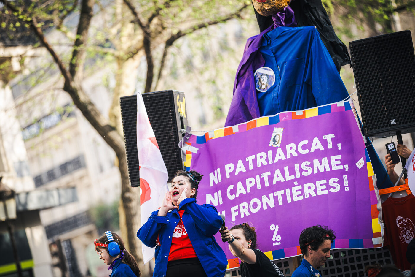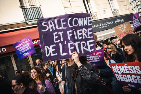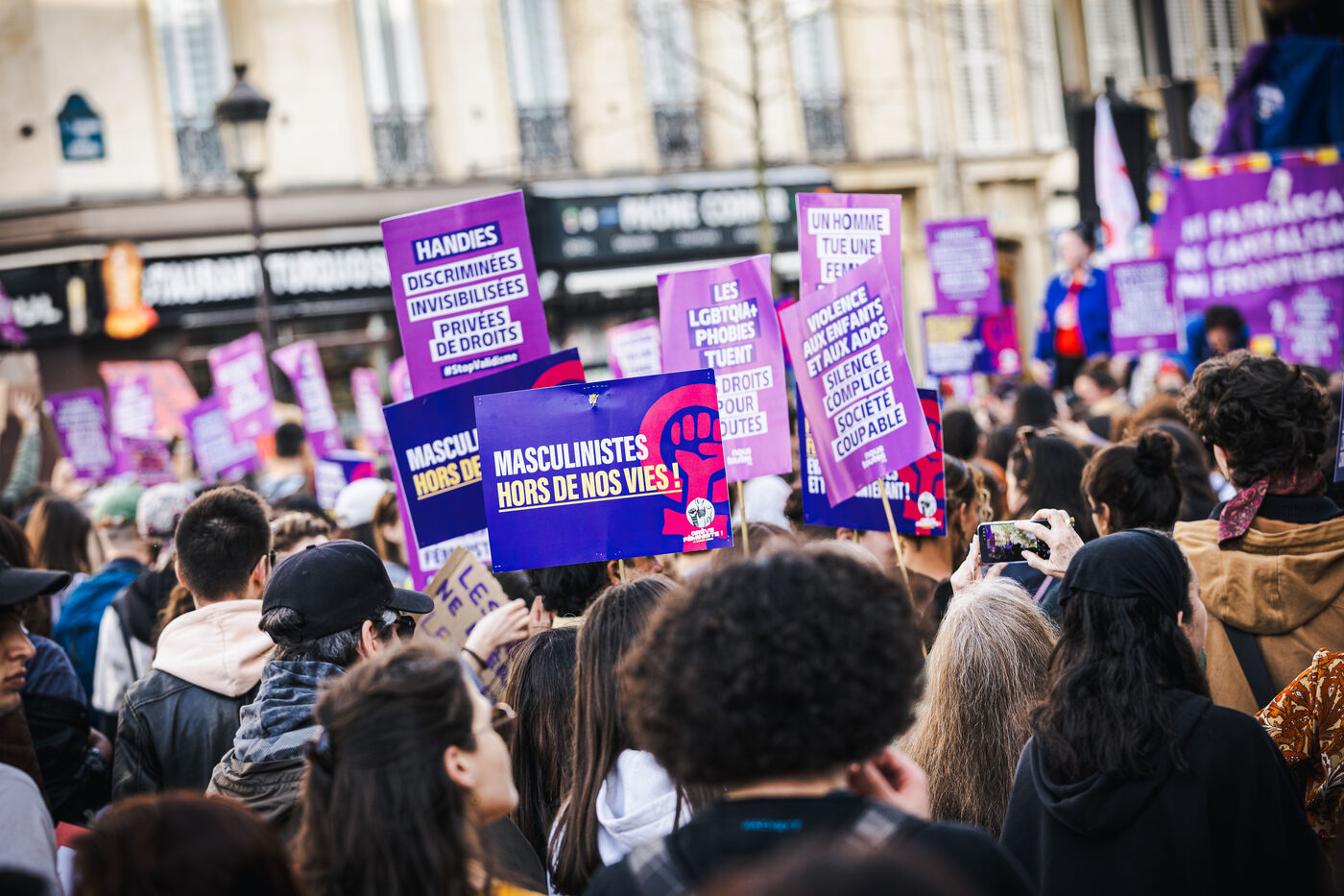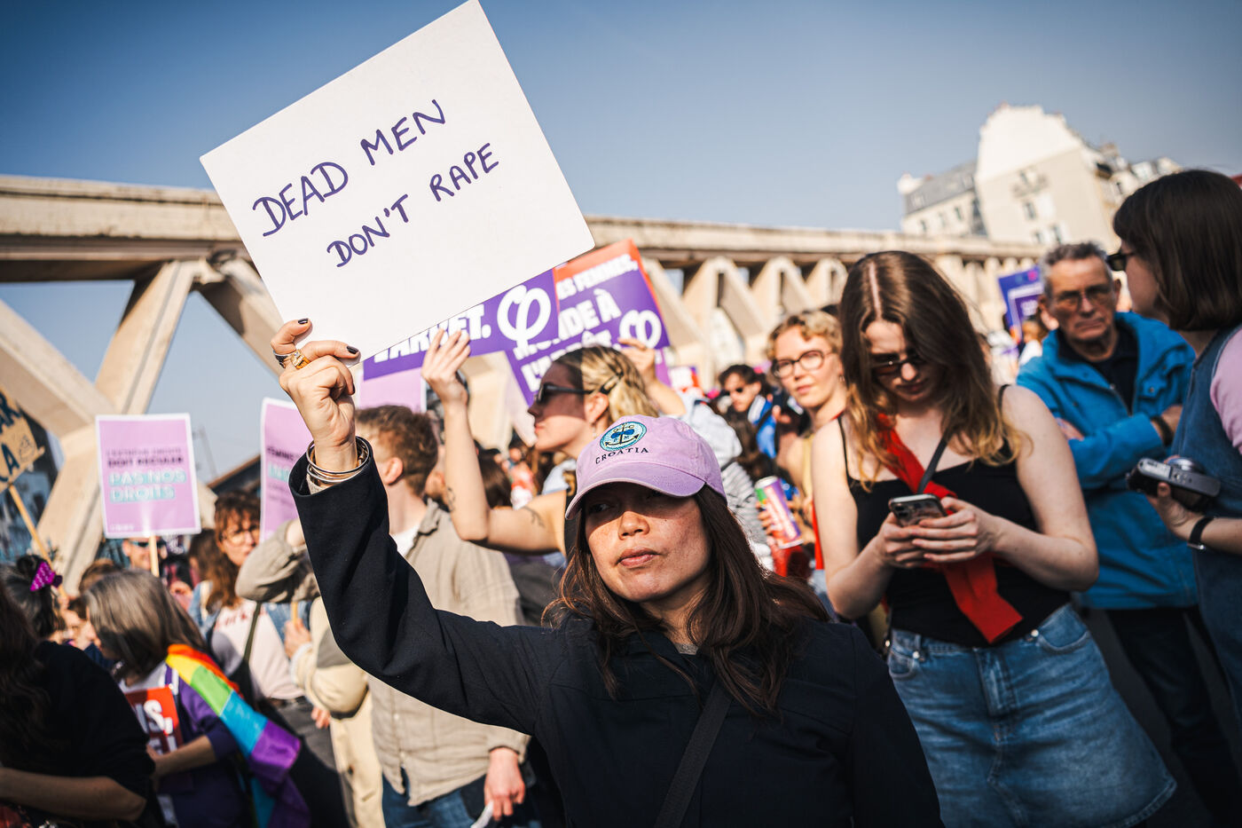 Feminist demonstration in the streets of Paris on International Women's Rights Day in Paris, France, on March 8, 2026. The main slogans chanted and messages written on placards are against patriarchy and against gender-based and sexual violence, in solidarity with women victims around the world.