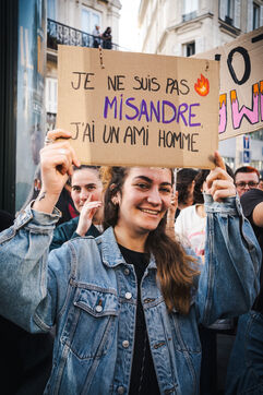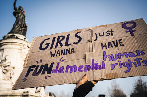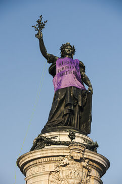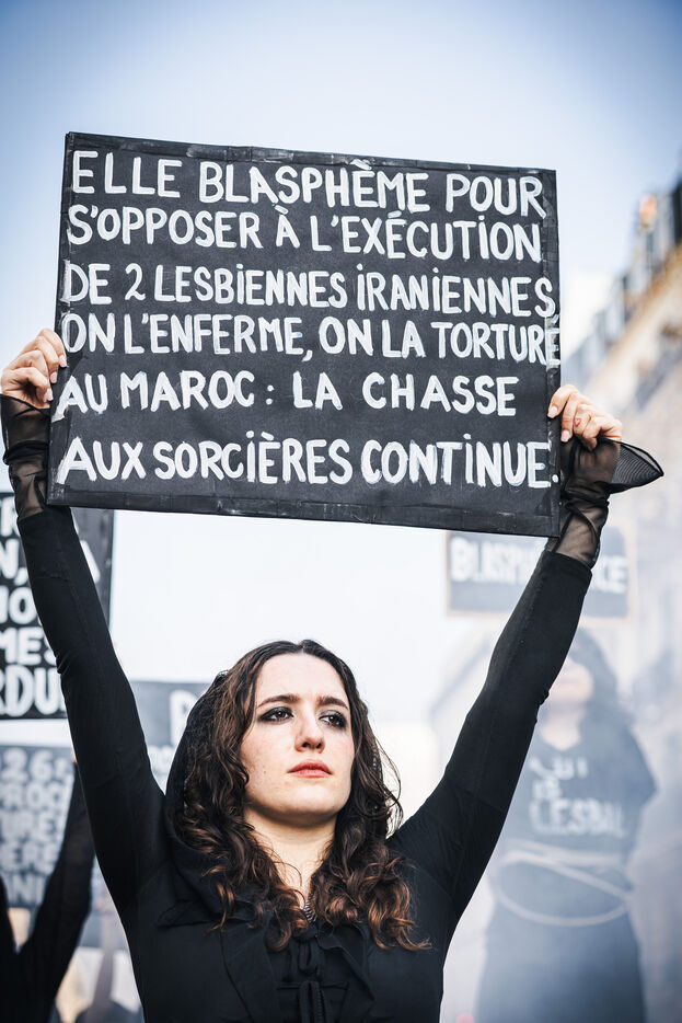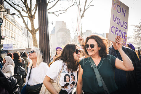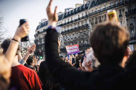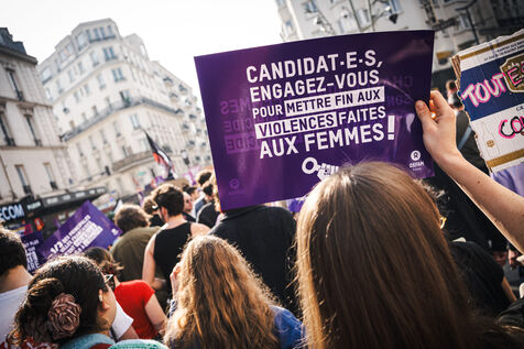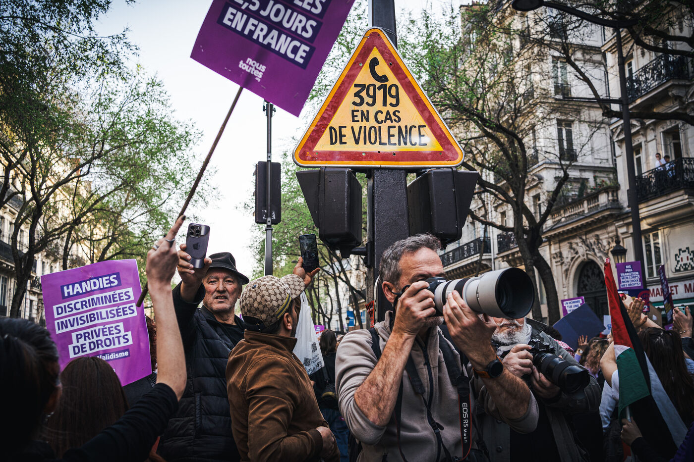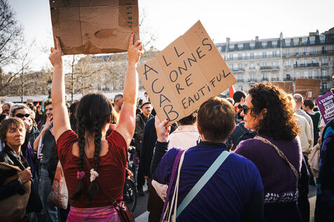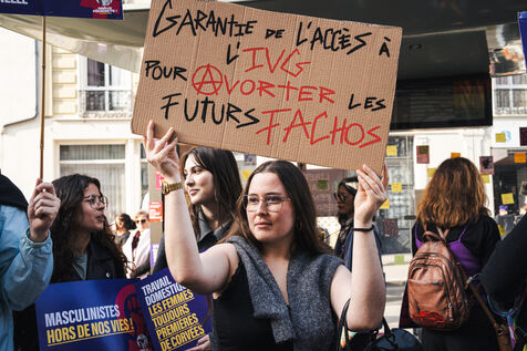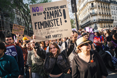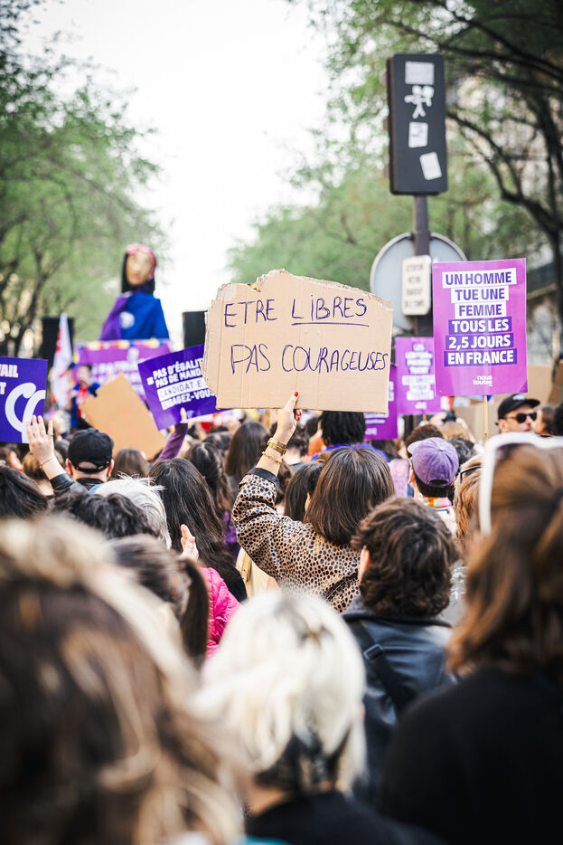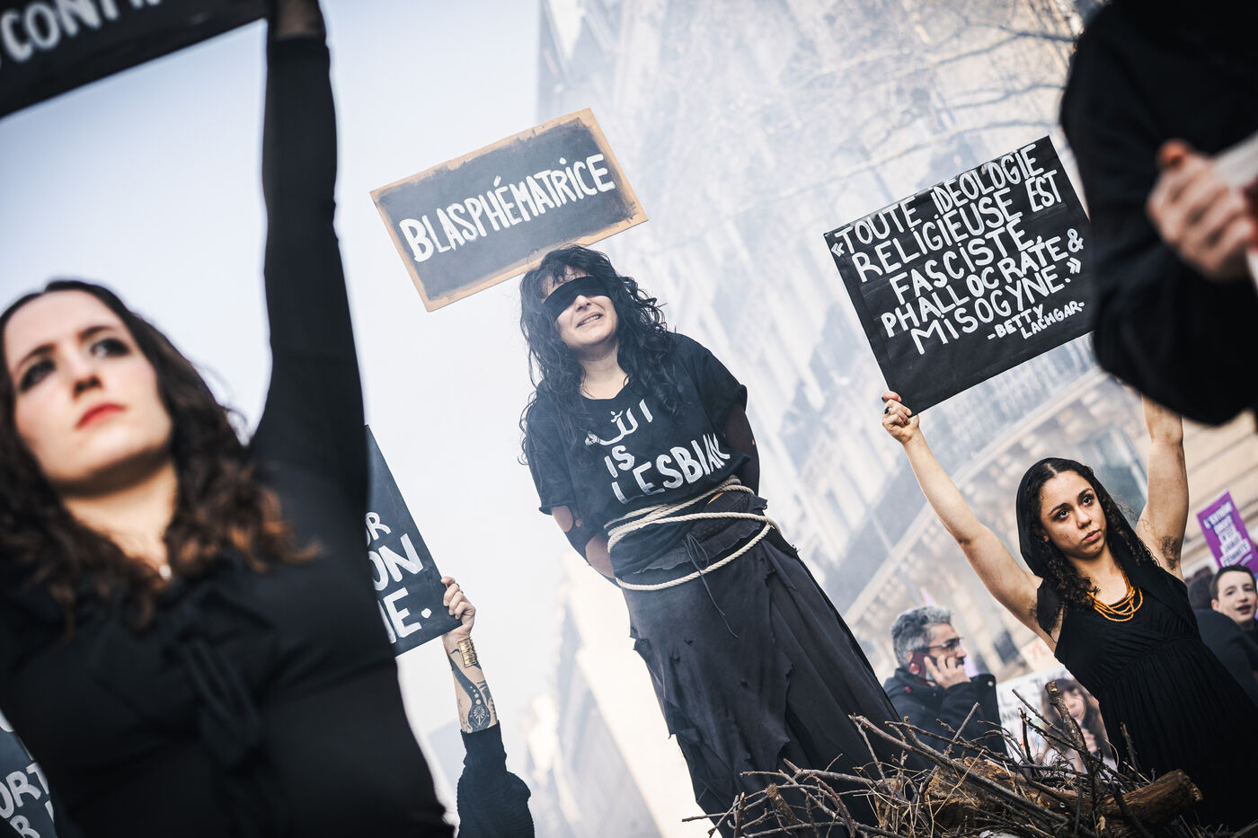 Feminist demonstration in the streets of Paris on International Women's Rights Day in Paris, France, on March 8, 2026. The main slogans chanted and messages written on placards are against patriarchy and against gender-based and sexual violence, in solidarity with women victims around the world.
