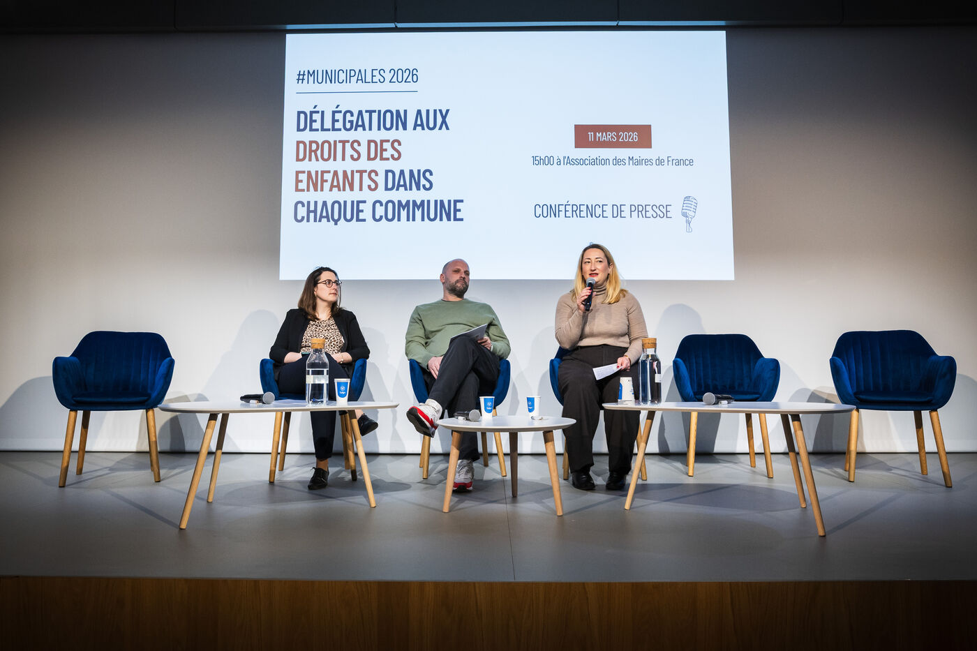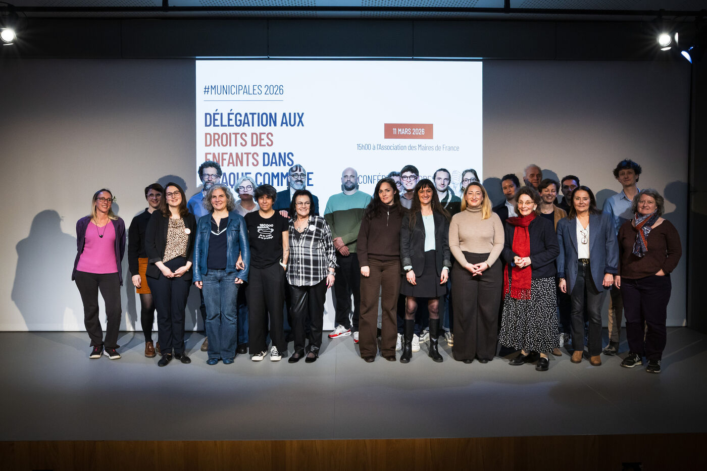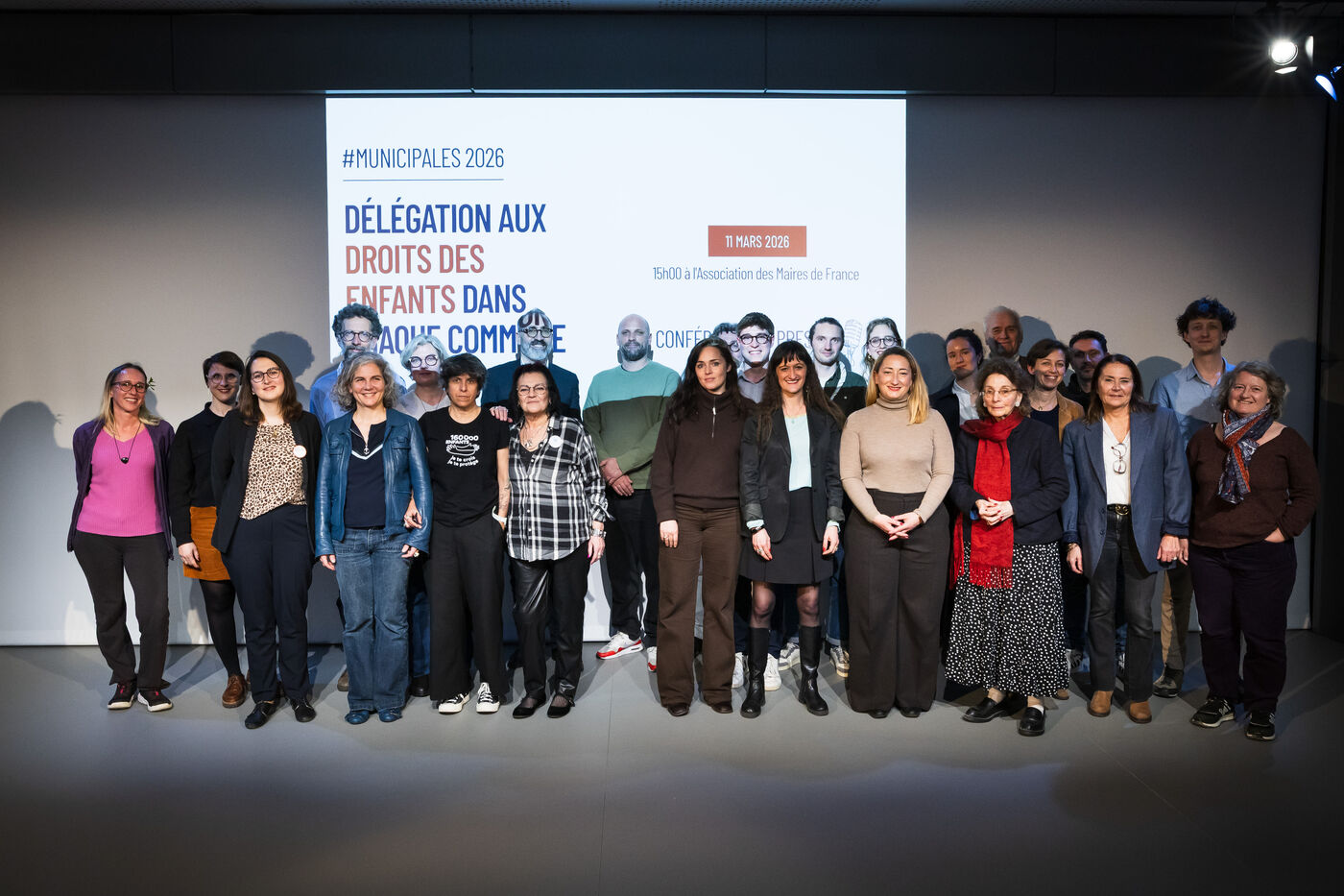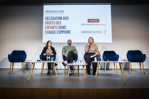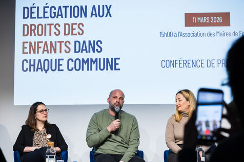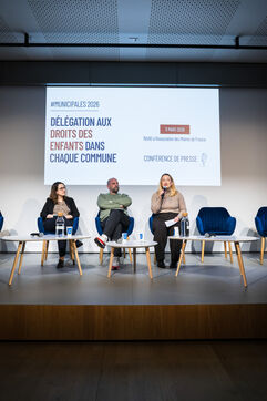 Press conference: With municipal elections approaching, a collective of 55 associations committed to promoting and protecting children's rights presents a unique and ambitious national initiative: the creation of a children's rights delegation and specific commitments within each municipality, at the auditorium of the Association of Mayors of France (AMF) in Paris, France on March 11, 2026.
