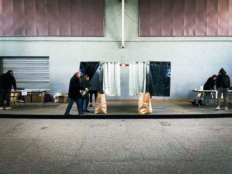 Photo d'illustration dans et autour d'un bureau de vote, le dimanche 15 et 22 mars, jours des premier et second tour et pendant l'entre deux tours des élections municipales à Paris, France.