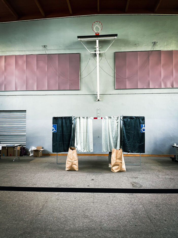 Illustrative photos taken in and around a polling station on Sunday 15 and 22 March, the days of the first and second rounds, and during the interval between the two rounds of the municipal elections in Paris, France.