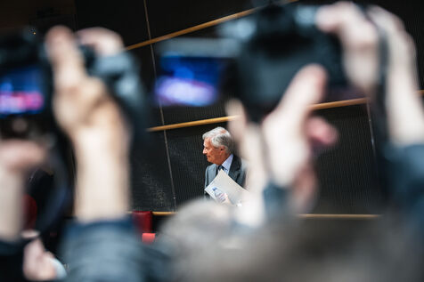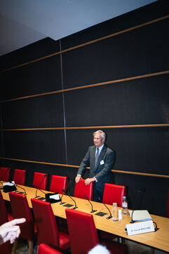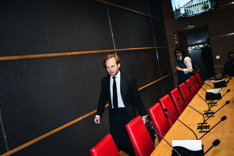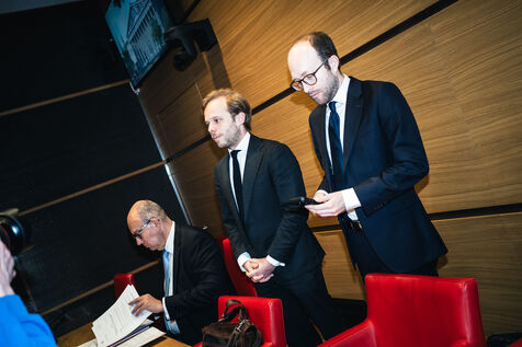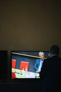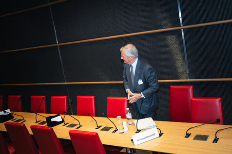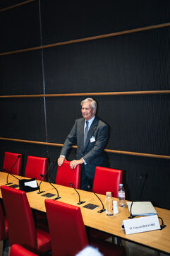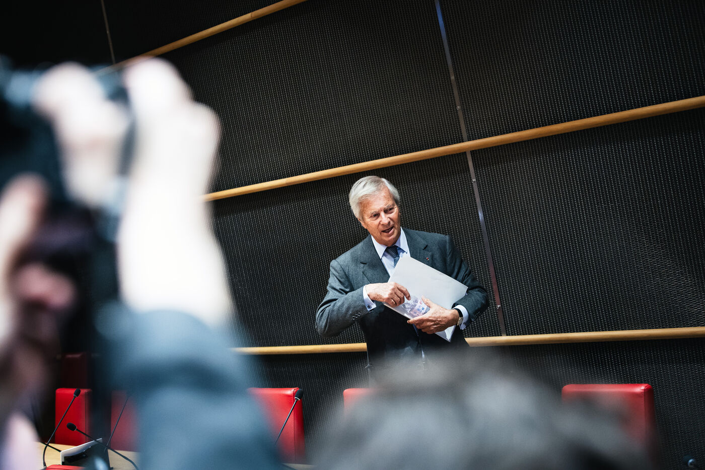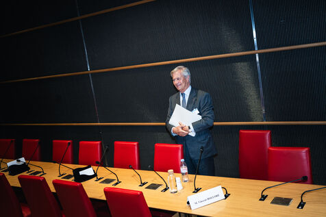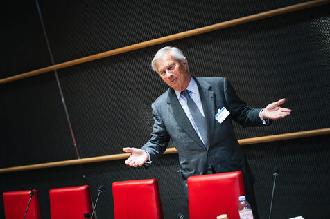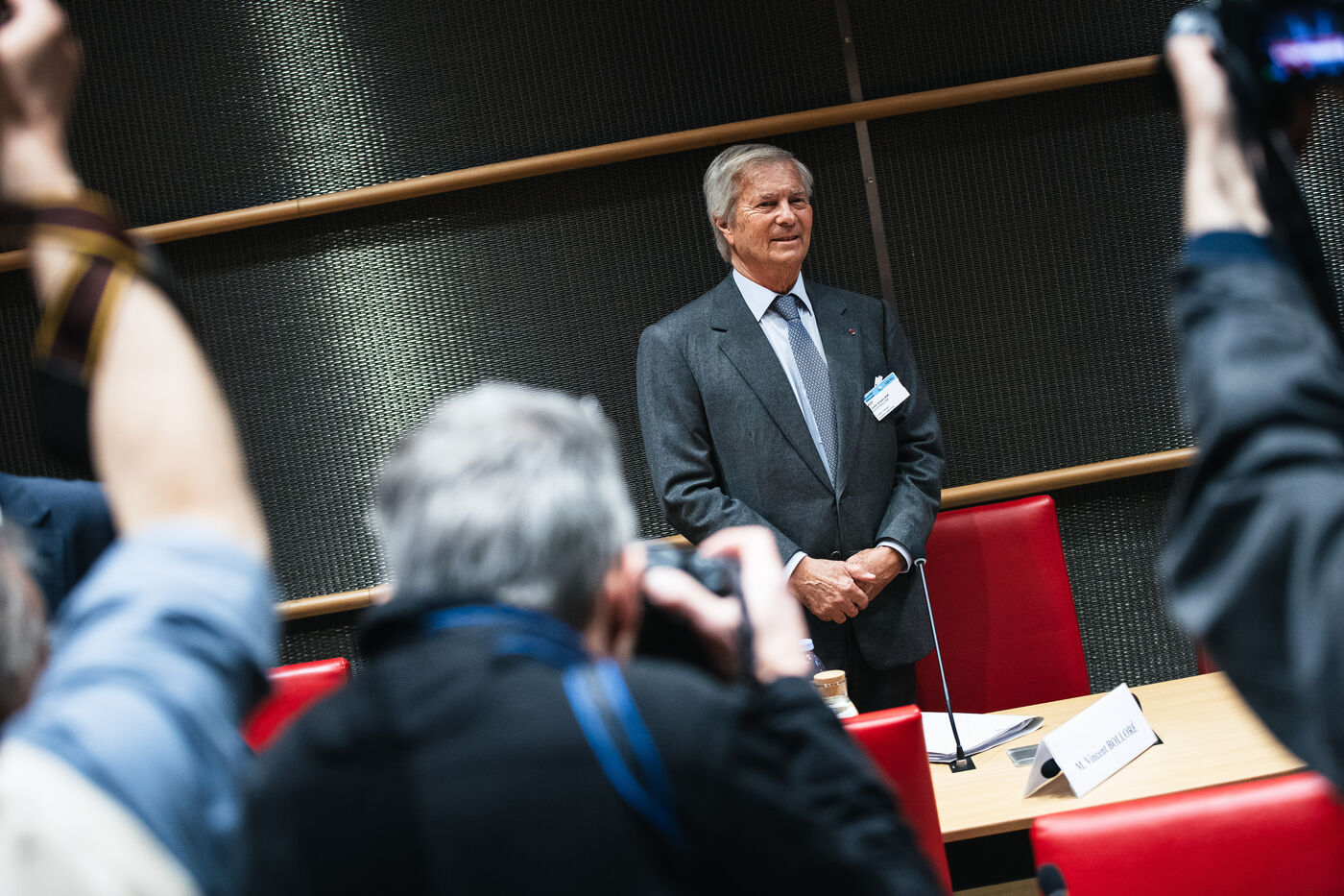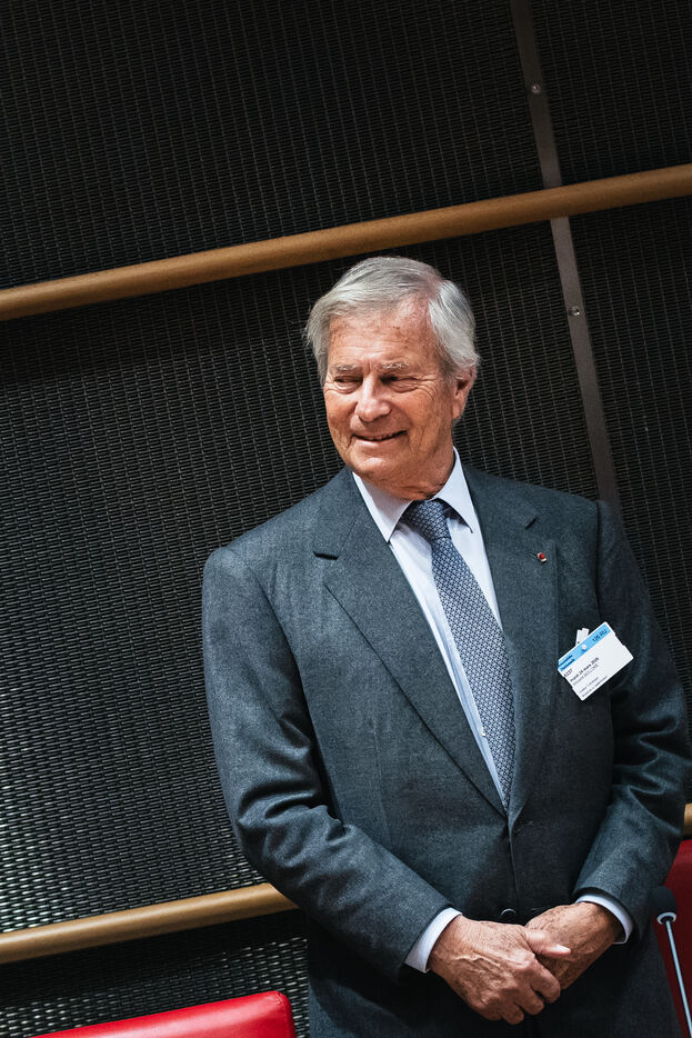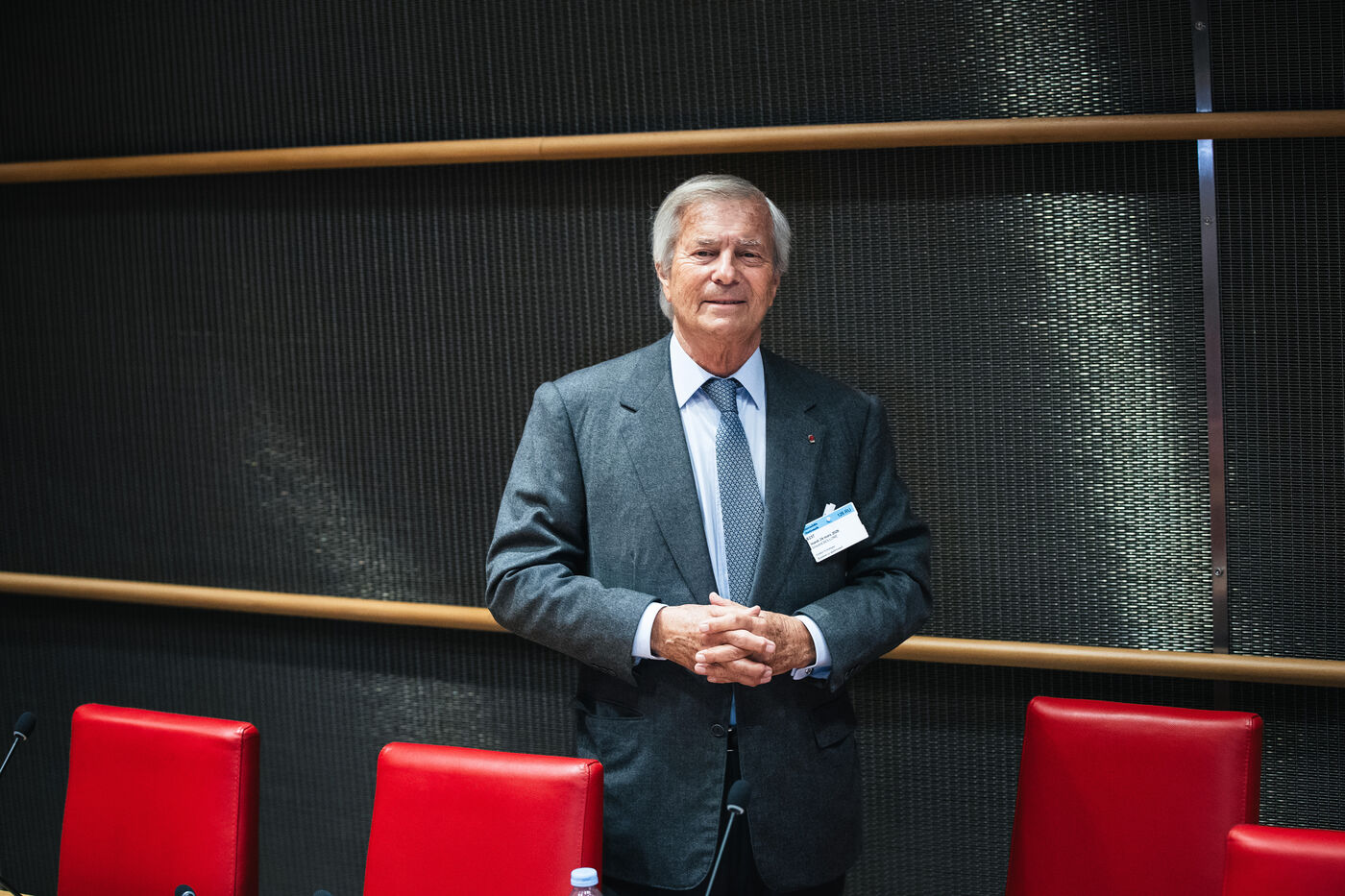 Hearing of Vincent Bollore, French industrialist and businessman, chairman of Compagnie de l'Odet and former chairman and chief executive of the Bollore Group, by members of the National Assembly’s Committee of Inquiry into the neutrality, operation and funding of public broadcasting in Paris, France on March 24, 2026.
