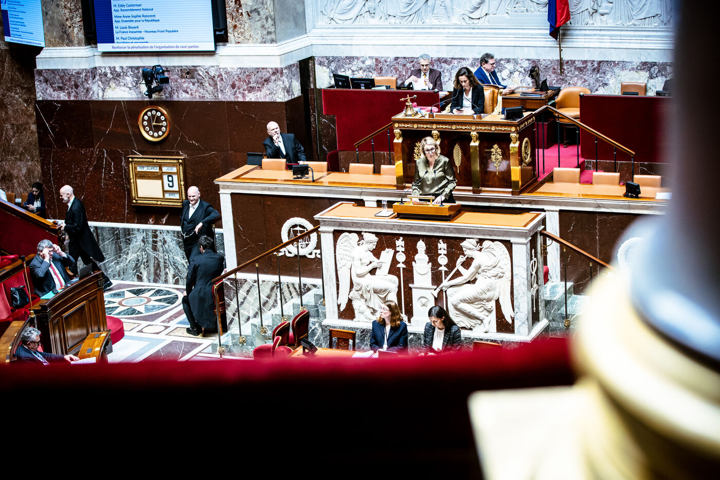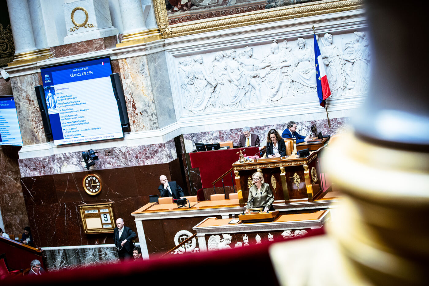 Examination and debate on a bill aimed at increasing the penalties for organising rave parties, as part of the parliamentary group Horizons’ designated parliamentary day in the chamber of the National Assembly in Paris, France on April 9, 2026. A rave party or free party is a gathering usually organised clandestinely in a field, a shed or a warehouse, and which sometimes leads to disturbances (drugs, sexual violence, police crackdowns, seizure of sound equipment).