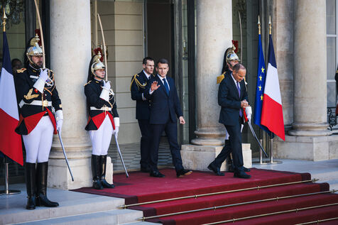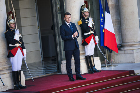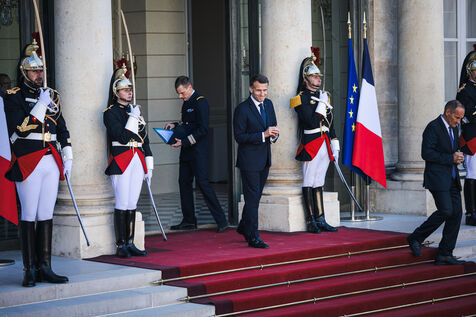 France's President Emmanuel Macron welcomes the President of the Islamic Republic of Mauritania, Mohamed Ould Cheikh El Ghazouani, on the occasion of a state visit, ahead of their bilateral meeting at the Presidential Elysee Palace in Paris, France on April 15, 2026.