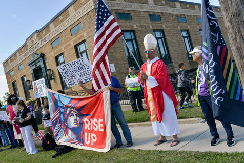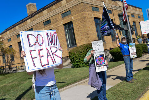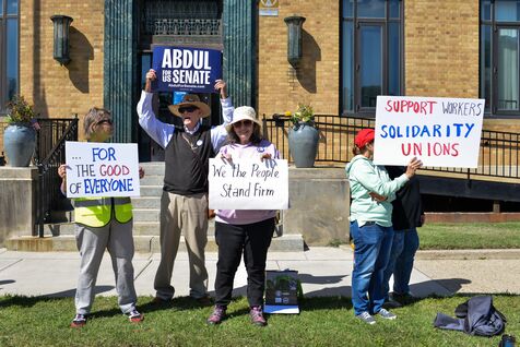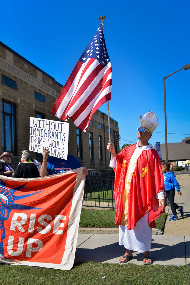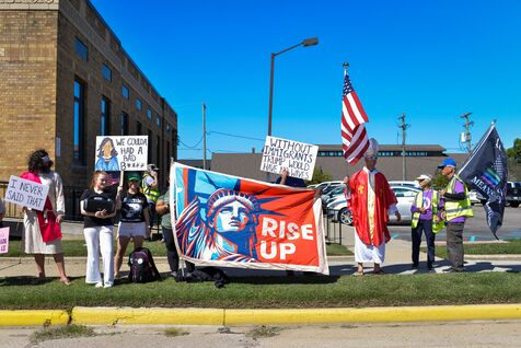 USA, South Haven, Illinois, 2025-08-30. Several american citizens gathered in front of the South Haven post office to protestDonald Trimp's policies, particularly his choices and actions regarding immigration. It was a peaceful and motionless demonstration in this seaside town on the shores of Lake Michigan. Many cars honked as they passed, showing their support for the demonstrators.