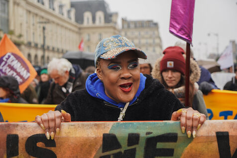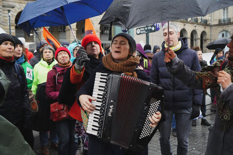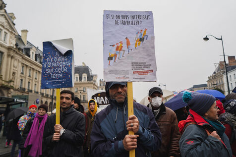Rassemblement place République à Rennes pour de la Journée internationale des migrants.