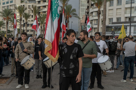 Demonstration organized by Hezbollah in Beirut to commemorate the victims of the September 17, 2024, beeper explosion that killed 12 people and injured more than 2,000.