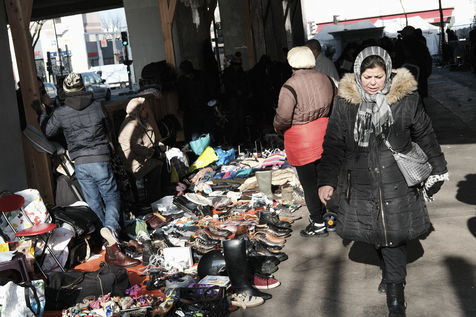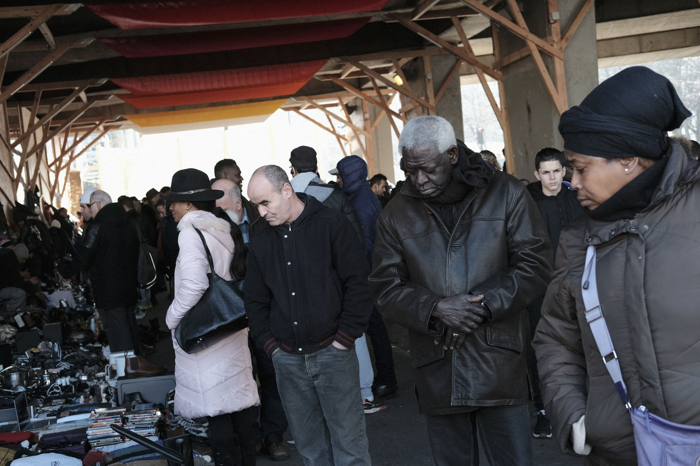 Marché des biffins, Porte de Montmartre. The City of Paris has legalized 270 sites reserved for the most deprived. They come to sell salvage items there. Paris, 13 February 2017.