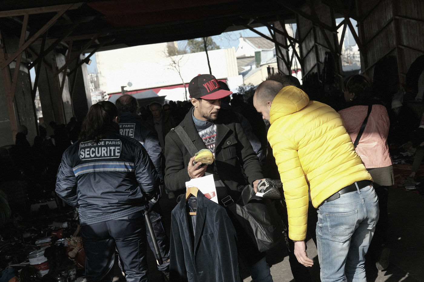 Marché des biffins, à la Porte de Montmartre. La mairie de Paris à légalisé 270 emplacements réservés aux plus démunis. Ils viennent y vendre des objets de récupération.
