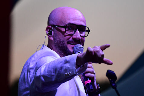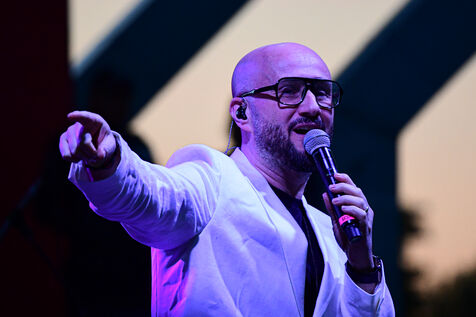 Turkish musician Beduk performs on stage at Anitpark on the occasion of the May 19 Commemoration of Ataturk, Youth and Sports Day in Ankara, Turkey on May 19, 2025.