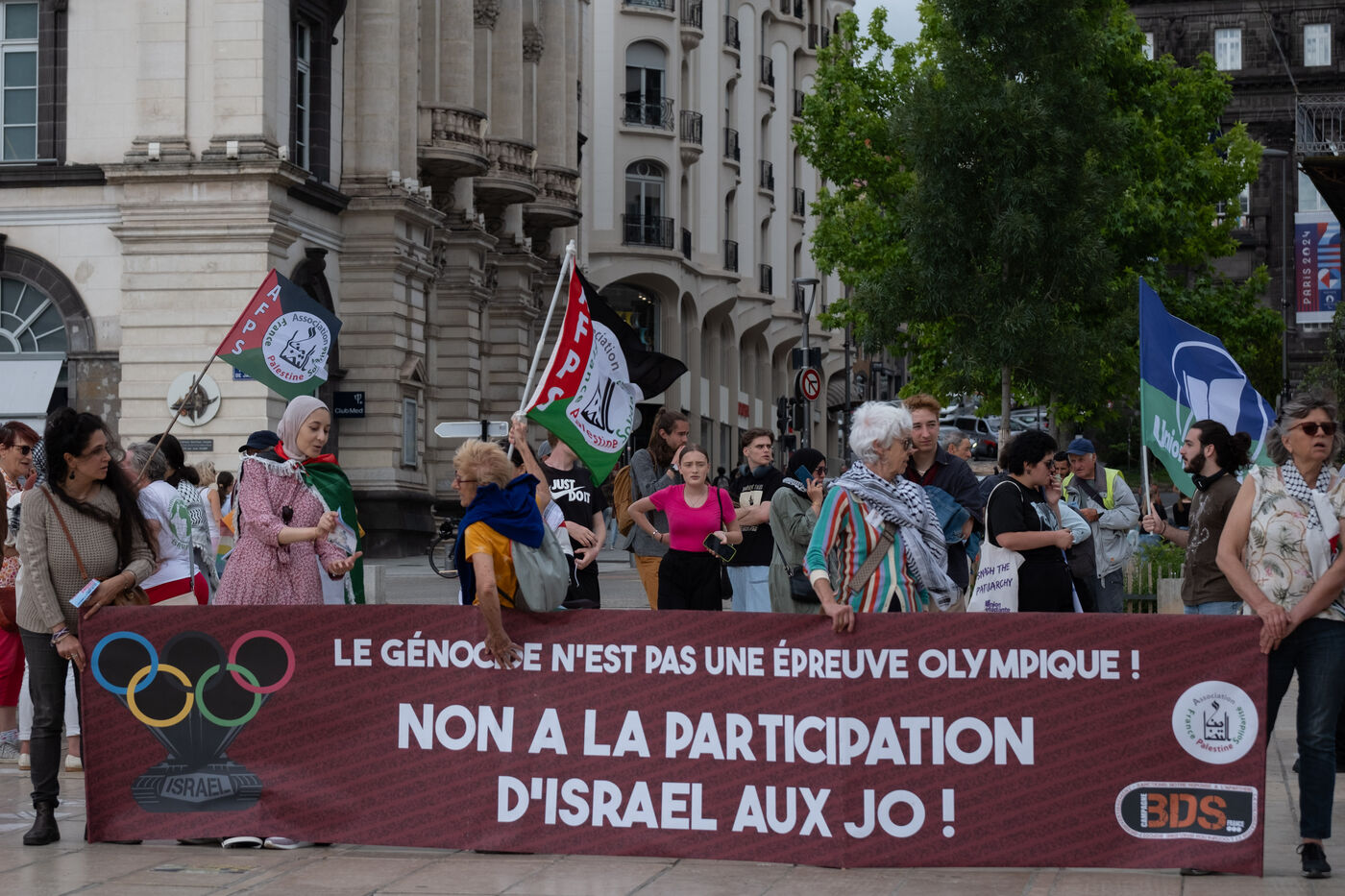 This Thursday, June 20, a demonstration was held in Place de Jaude, Clermont-Ferrand, to protest against Israel's presence at the 2024 Olympic Games in Paris. This protest takes place the day before the Olympic Flame passes through the Auvergne region.