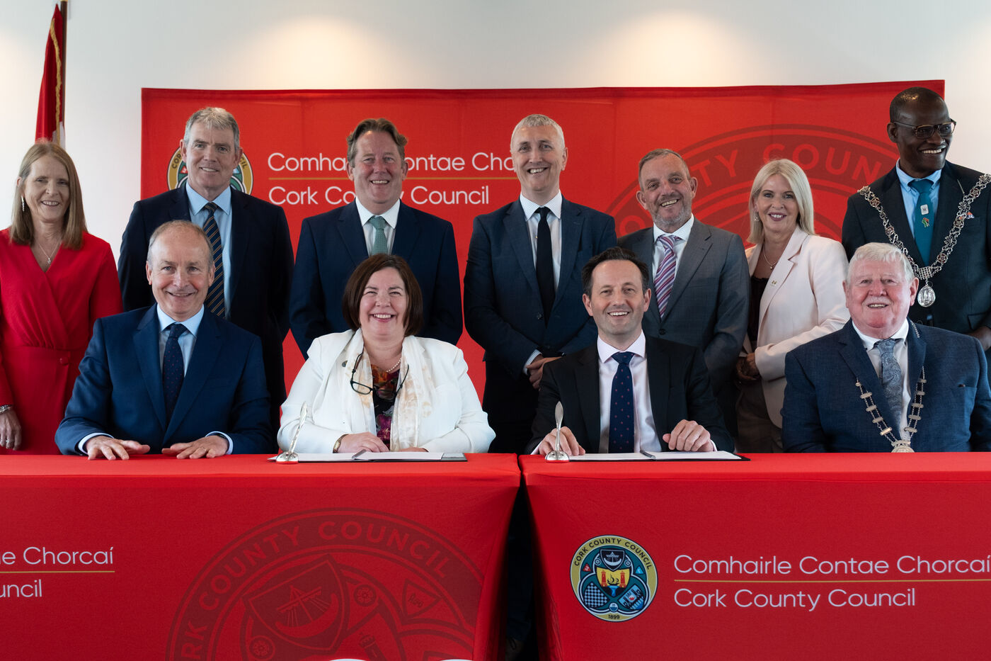 Taoiseach Micheál Martin, Transport Minister Darragh O’Brien, and Minister Jerry Buttimer attended the signing, highlighting government support for regional infrastructure.