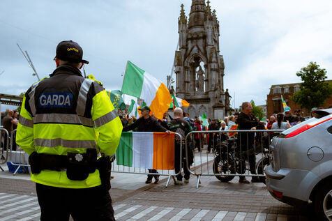 Separating the two demonstrations was a no man's land, occupied mostly by gardai (Irish police forces), legal observers, journalists, and occasional tourists or locals hoping to park their cars.